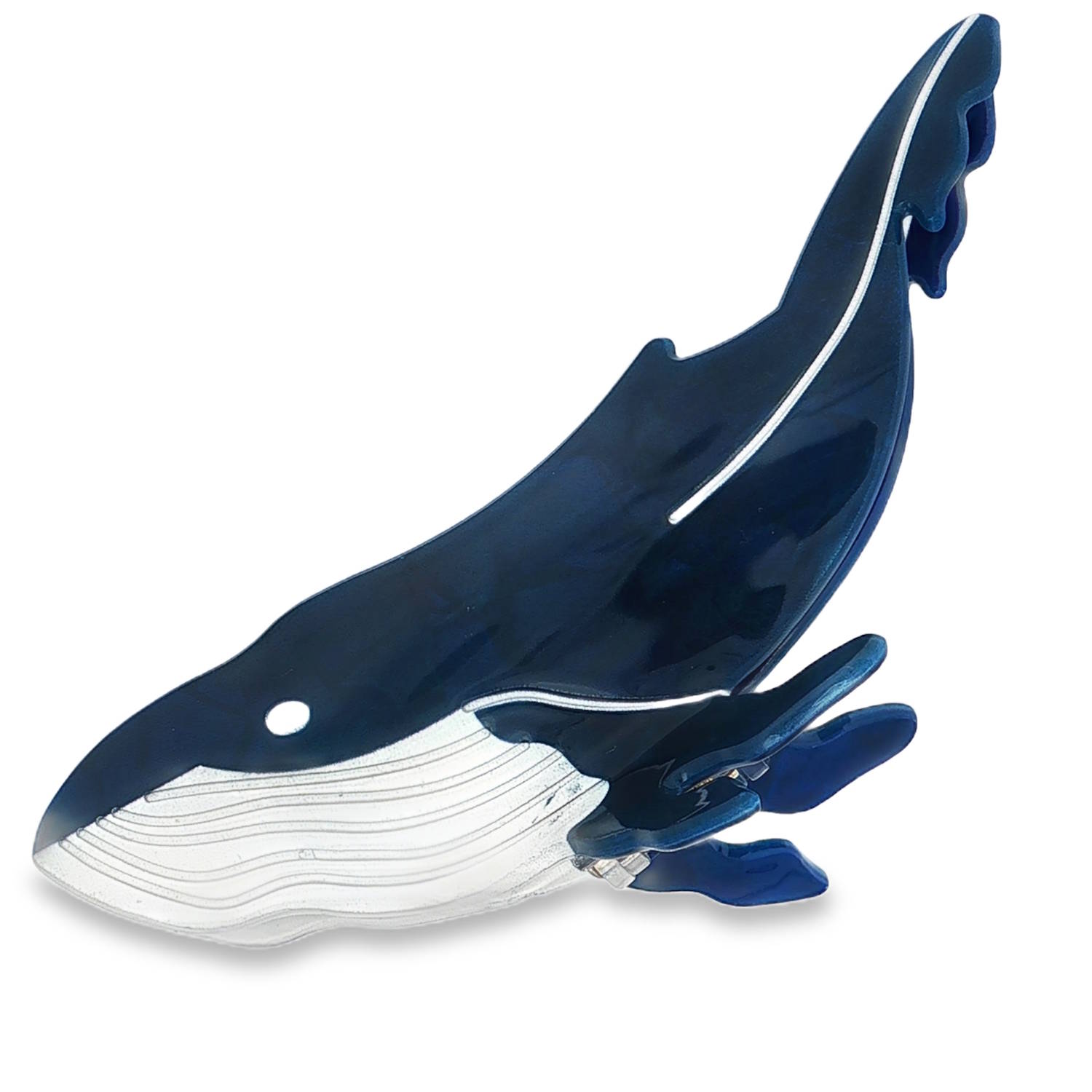 Description Cette pince à cheveux est un accessoire à la fois ludique et élégant, parfait pour apporter une touche marine et originale à une coiffure. La pince représente une baleine à bosse (ou un rorqual) dans une posture dynamique, comme si elle était en plein saut ou en mouvement dans l'océan. Elle arbore un dégradé de bleu marine profond et brillant sur le dessus, contrastant joliment avec le ventre de l'animal qui est blanc strié, reproduisant fidèlement les fanons caractéristiques des baleines. Cliquez sur une matière, un thème, une couleur ou une collection pour voir tous les articles associés.