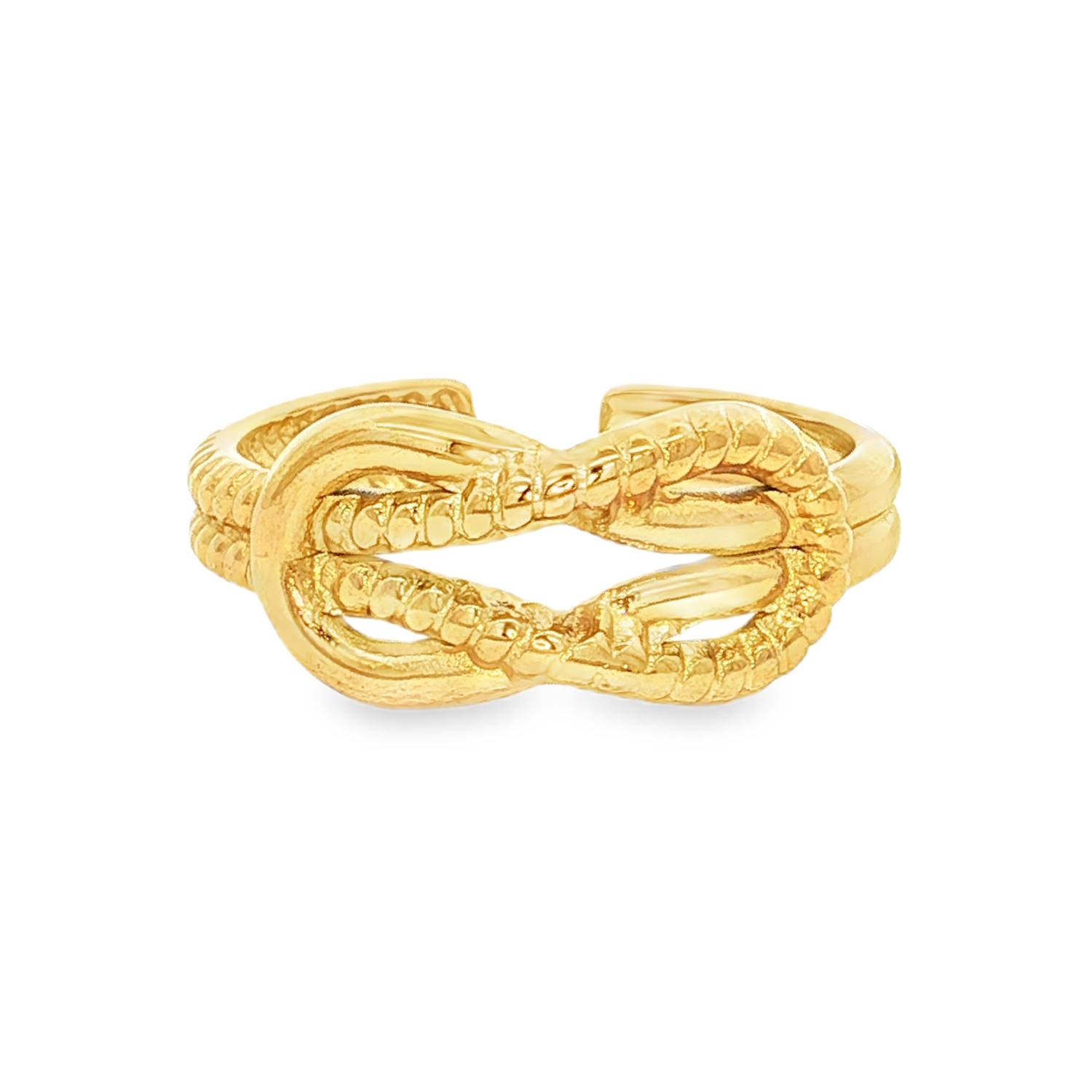 Description Affirmez votre style avec cette bague au design texturé et symbolique. Alliant robustesse et finesse, ce bijou capture l'essence de l'esthétique nautique pour un look à la fois moderne et intemporel. La bague met en avant un motif central de nœud plat, symbole d'attachement, de force et de fidélité. Grâce à son anneau ouvert à l'arrière, cette bague peut s'ajuster légèrement à votre doigt, garantissant un confort optimal tout au long de la journée. Largeur 8 mm Matière(s) Acier . L'acier utilisé dans la bijouterie existe sous plusieurs qualités. Nous utilisons principalement la qualité 316L, qualité qui est utilisée en chirurgie. Cet acier est donc inoxydable et reste très résistant. Fermoir Aucun Couleur(s) dominante(s) Doré Public Adolescent , Adulte . Genre Femme , Fille . Saison Indémodable . Cliquez sur une matière, un thème, une couleur ou une collection pour voir tous les articles associés.