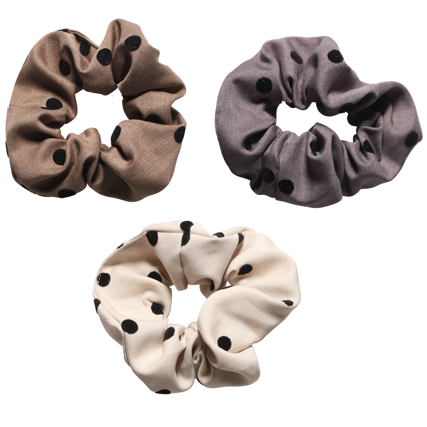 DescriptionChouchou pour cheveux de couleur avec pois noirs.
