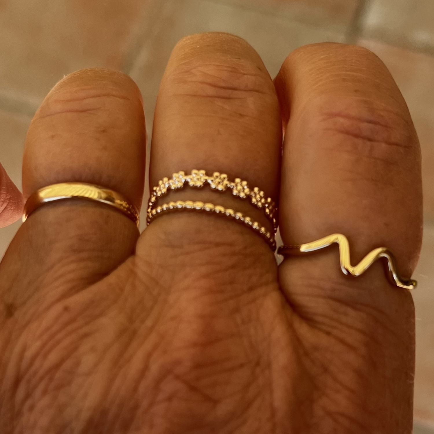 Description Bague anneau boules en plaqué or jaune 18 carats. Largeur 1 mm Matière(s) Plaqué or . Nos bijoux en plaqué or sont faits sur une base de laiton et recouverts d'or 18 carats à 3 microns sans dispersion. Cela signifie que nous garantissons 3 microns d'or sur n'importe quelle partie du bijou. Sur la plupart de nos bijoux empierrés, nous montons à 5 microns d'or 18 carats. Pour finir, nous faisons également une finition avec de l'or 24 carats afin de donner un plus bel éclat à nos bijoux. Couleur(s) dominante(s) Doré Public Adolescent , Adulte . Genre Femme , Fille . Saison Indémodable . Cliquez sur une matière, un thème, une couleur ou une collection pour voir tous les articles associés.