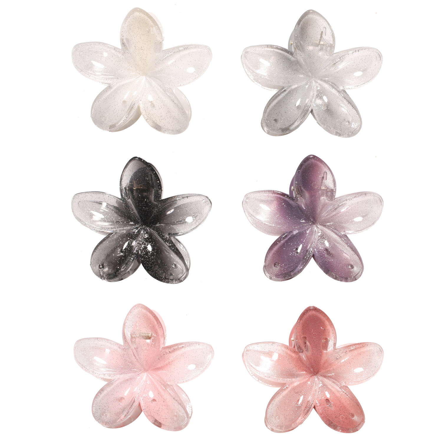 DescriptionPince crabe pour cheveux en forme de fleur en plastique de couleur.