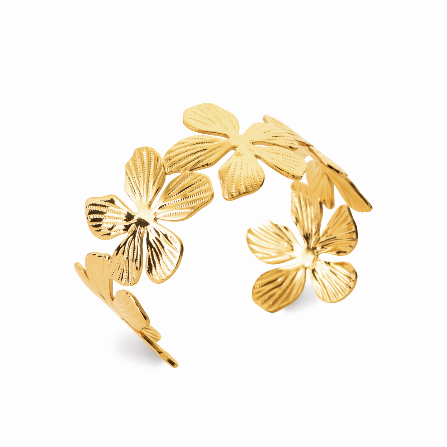 Description Bracelet manchette en forme de fleurs en acier chirurgical 316L doré. Largeur 33 mm Diamètre 62 mm [Guide des tailles] Matière(s) Acier . L'acier utilisé dans la bijouterie existe sous plusieurs qualités. Nous utilisons principalement la qualité 316L, qualité qui est utilisée en chirurgie. Cet acier est donc inoxydable et reste très résistant. Fermoir Aucun Couleur(s) dominante(s) Doré Public Adolescent , Adulte . Genre Femme , Fille . Saison Indémodable . Thème(s) Fleurs , Nature . Cliquez sur une matière, un thème, une couleur ou une collection pour voir tous les articles associés.