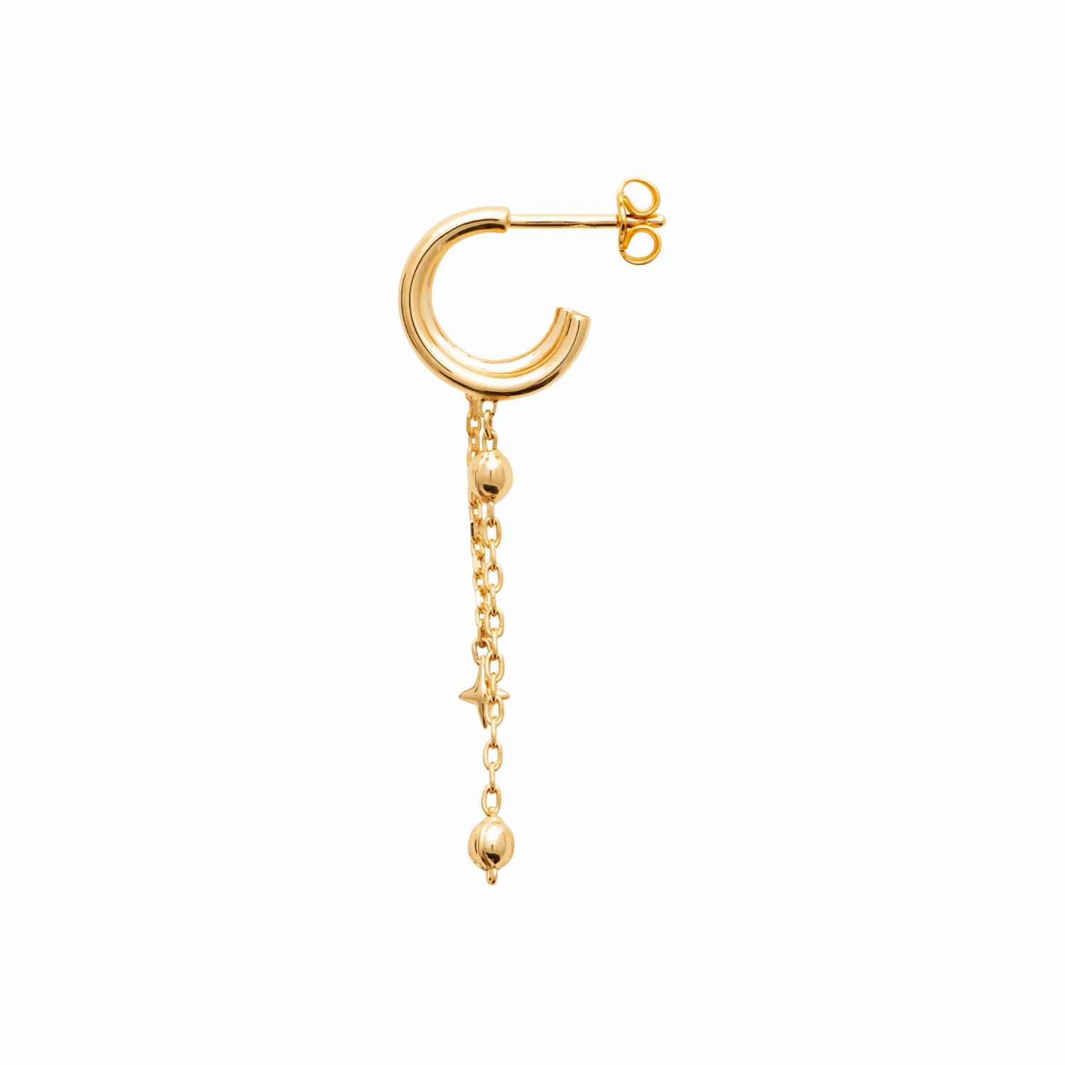Description Boucle d'oreille créole double rangs avec deux chaînettes, deux perles et une étoile en plaqué or jaune 18 carats. Vendu à l'unité. Hauteur 42 mm Diamètre 10 mm Matière(s) Plaqué or . Nos bijoux en plaqué or sont faits sur une base de laiton et recouverts d'or 18 carats à 3 microns sans dispersion. Cela signifie que nous garantissons 3 microns d'or sur n'importe quelle partie du bijou. Sur la plupart de nos bijoux empierrés, nous montons à 5 microns d'or 18 carats. Pour finir, nous faisons également une finition avec de l'or 24 carats afin de donner un plus bel éclat à nos bijoux. Fermoir Tiges poussettes Couleur(s) dominante(s) Doré Public Adolescent , Adulte . Genre Femme , Fille . Saison Indémodable . Thème(s) Nature . Cliquez sur une matière, un thème, une couleur ou une collection pour voir tous les articles associés.