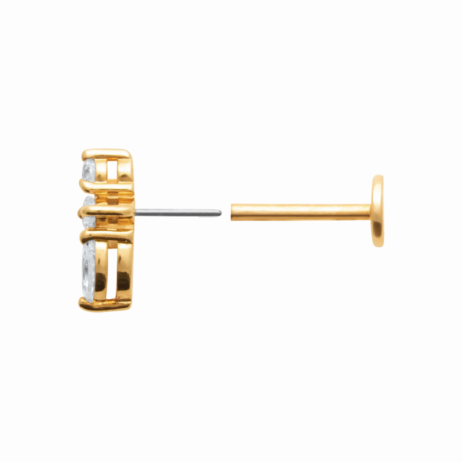 Description Piercing en plaqué or jaune 18 carats serti de trois oxydes de zirconium blancs et une tige en titane. Vendu à l'unité. Longueur 12 mm [Guide des tailles] Largeur 9 mm Diamètre 4 mm Matière(s) Plaqué or , Titane , Zirconium . Nos bijoux en plaqué or sont faits sur une base de laiton et recouverts d'or 18 carats à 3 microns sans dispersion. Cela signifie que nous garantissons 3 microns d'or sur n'importe quelle partie du bijou. Sur la plupart de nos bijoux empierrés, nous montons à 5 microns d'or 18 carats. Pour finir, nous faisons également une finition avec de l'or 24 carats afin de donner un plus bel éclat à nos bijoux. Fermoir Tiges poussettes Couleur(s) dominante(s) Doré Public Adolescent , Adulte . Genre Femme , Fille . Saison Indémodable . Cliquez sur une matière, un thème, une couleur ou une collection pour voir tous les articles associés.