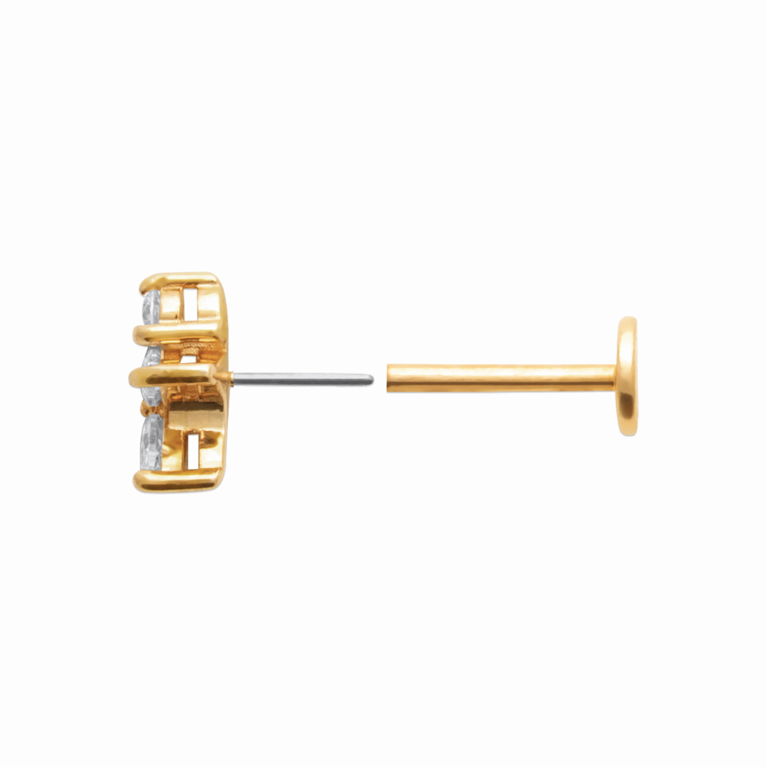 Description Piercing en plaqué or jaune 18 carats serti de trois oxydes de zirconium blancs et une tige en titane. Vendu à l'unité. Longueur 12 mm [Guide des tailles] Largeur 9 mm Diamètre 4 mm Matière(s) Plaqué or , Titane , Zirconium . Nos bijoux en plaqué or sont faits sur une base de laiton et recouverts d'or 18 carats à 3 microns sans dispersion. Cela signifie que nous garantissons 3 microns d'or sur n'importe quelle partie du bijou. Sur la plupart de nos bijoux empierrés, nous montons à 5 microns d'or 18 carats. Pour finir, nous faisons également une finition avec de l'or 24 carats afin de donner un plus bel éclat à nos bijoux. Fermoir Tiges poussettes Couleur(s) dominante(s) Doré Public Adolescent , Adulte . Genre Femme , Fille . Saison Indémodable . Cliquez sur une matière, un thème, une couleur ou une collection pour voir tous les articles associés.