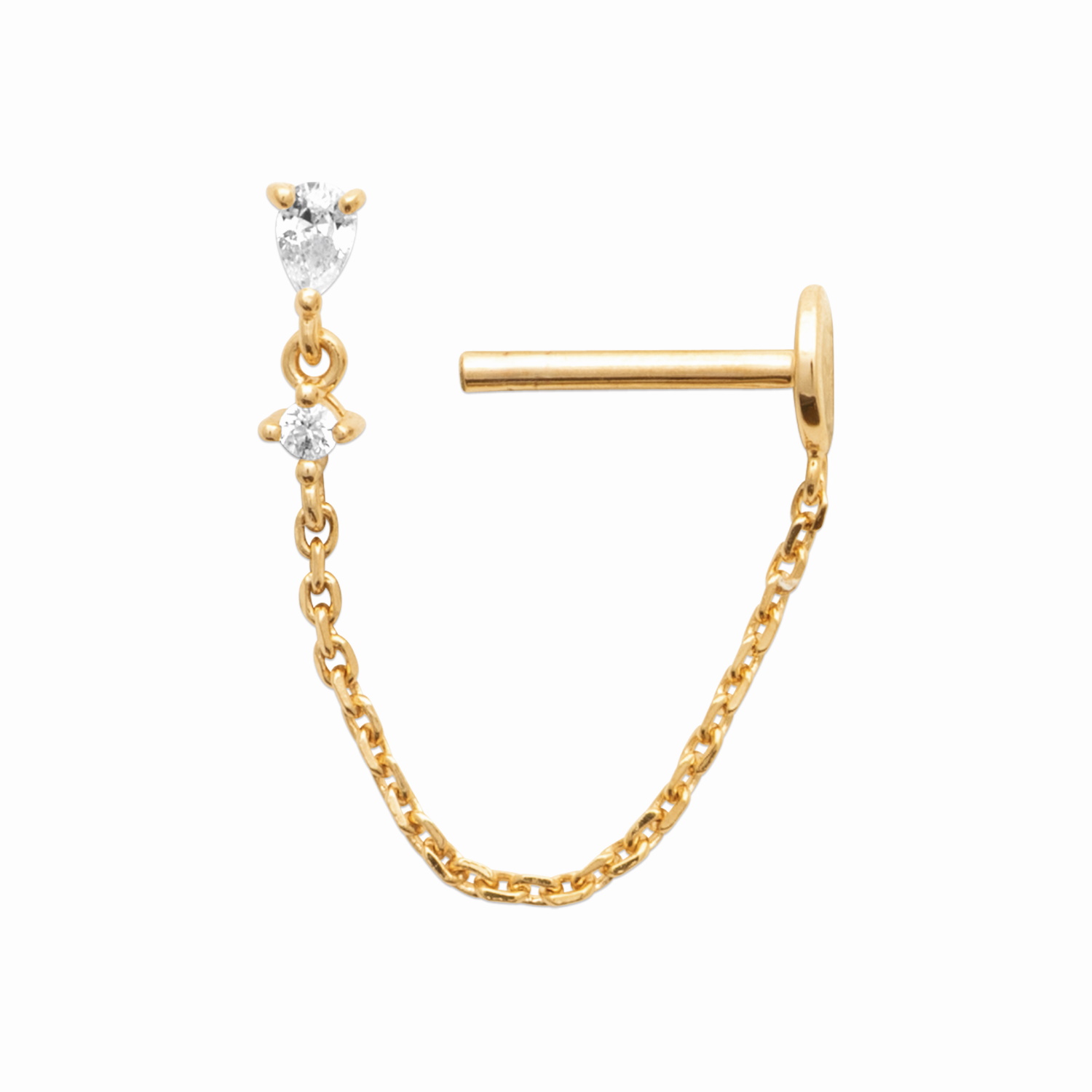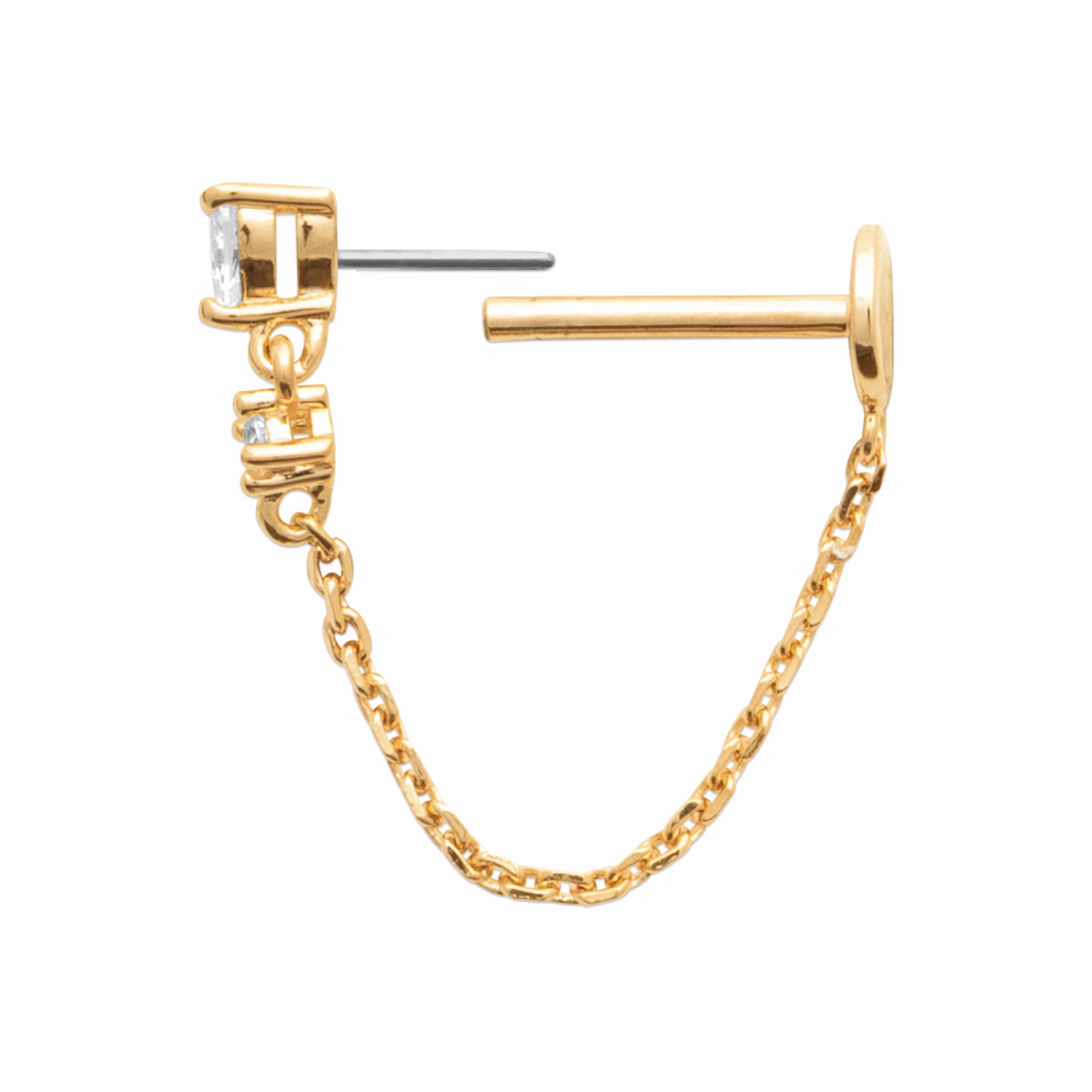 Description Piercing avec une chaînette en plaqué or jaune 18 carats serti de deux oxydes de zirconium blancs et une tige en titane. Vendu à l'unité. Longueur 12 mm [Guide des tailles] Diamètre 4 mm Matière(s) Plaqué or , Titane , Zirconium . Nos bijoux en plaqué or sont faits sur une base de laiton et recouverts d'or 18 carats à 3 microns sans dispersion. Cela signifie que nous garantissons 3 microns d'or sur n'importe quelle partie du bijou. Sur la plupart de nos bijoux empierrés, nous montons à 5 microns d'or 18 carats. Pour finir, nous faisons également une finition avec de l'or 24 carats afin de donner un plus bel éclat à nos bijoux. Fermoir Tiges poussettes Couleur(s) dominante(s) Doré Public Adolescent , Adulte . Genre Femme , Fille . Saison Indémodable . Cliquez sur une matière, un thème, une couleur ou une collection pour voir tous les articles associés.