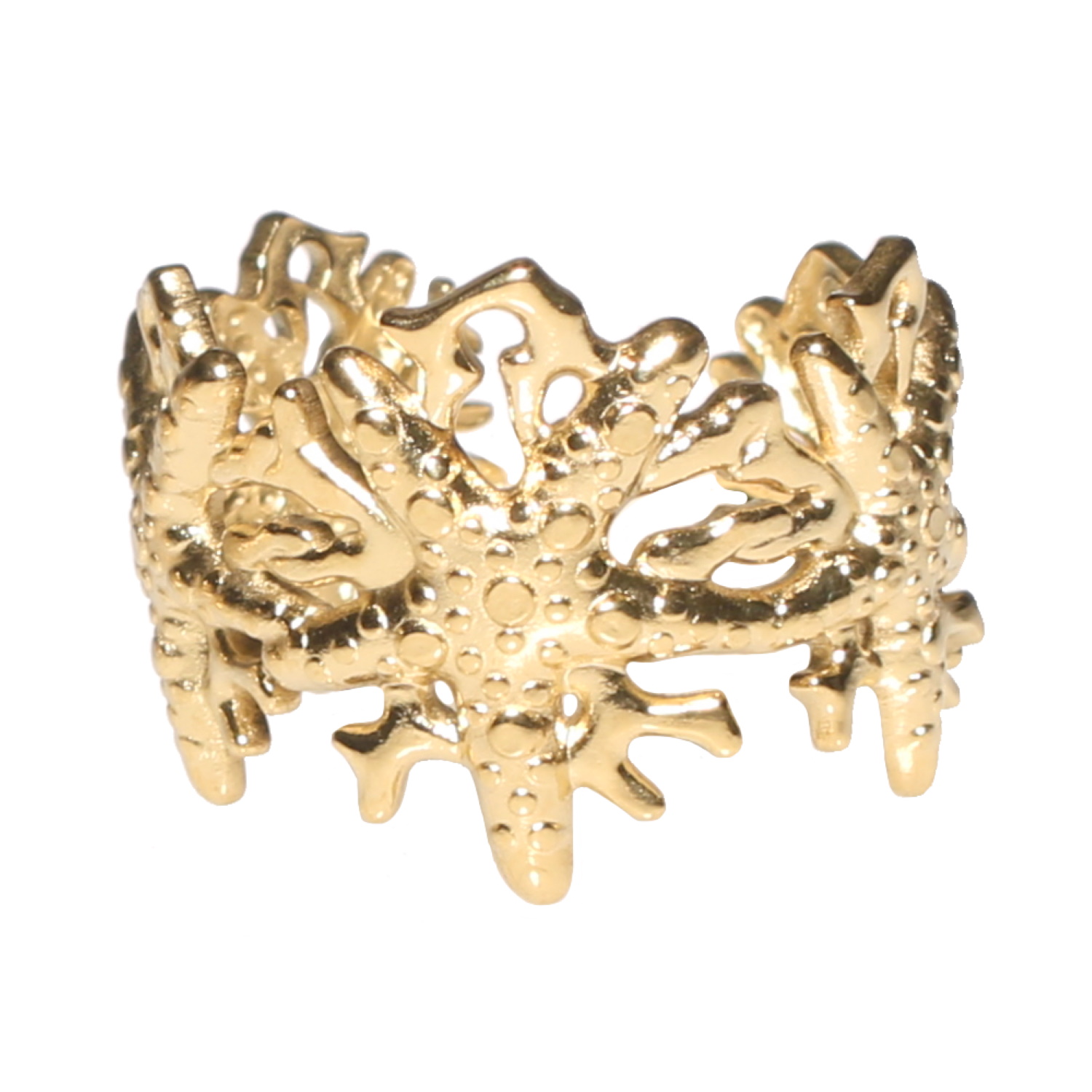 Description Bague en forme d'étoiles de mer avec algues en acier inoxydable doré. Taille ajustable. Largeur 17 mm Matière(s) Acier . L'acier utilisé dans la bijouterie existe sous plusieurs qualités. Nous utilisons principalement la qualité 316L, qualité qui est utilisée en chirurgie. Cet acier est donc inoxydable et reste très résistant. Fermoir Aucun Couleur(s) dominante(s) Doré Public Adolescent , Adulte . Genre Femme , Fille . Saison Indémodable . Thème(s) Animaux , Nature . Cliquez sur une matière, un thème, une couleur ou une collection pour voir tous les articles associés.