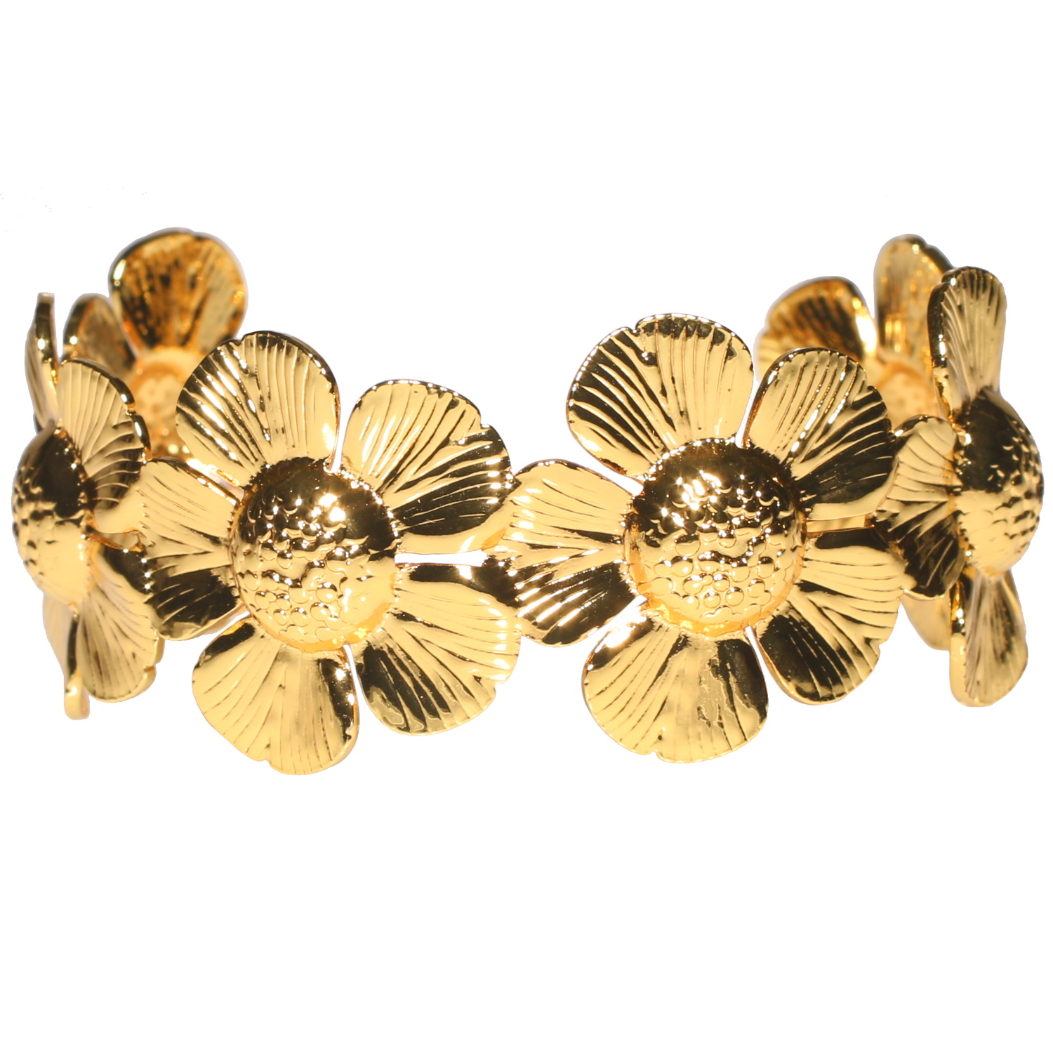 Description Bracelet manchette composé de fleurs en acier doré. Largeur 28 mm Diamètre 60 mm [Guide des tailles] Matière(s) Acier . L'acier utilisé dans la bijouterie existe sous plusieurs qualités. Nous utilisons principalement la qualité 316L, qualité qui est utilisée en chirurgie. Cet acier est donc inoxydable et reste très résistant. Fermoir Aucun Couleur(s) dominante(s) Doré Public Adolescent , Adulte . Genre Femme , Fille . Saison Indémodable . Thème(s) Fleurs , Nature . Rayon en magasin TC8 Cliquez sur une matière, un thème, une couleur ou une collection pour voir tous les articles associés.