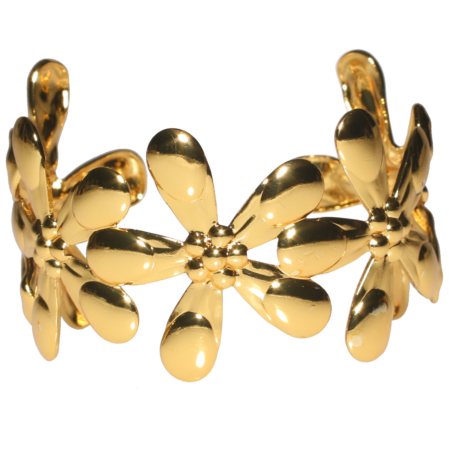 Description Bracelet manchette composé de fleurs en acier doré. Largeur 42 mm Diamètre 56 mm [Guide des tailles] Matière(s) Acier . L'acier utilisé dans la bijouterie existe sous plusieurs qualités. Nous utilisons principalement la qualité 316L, qualité qui est utilisée en chirurgie. Cet acier est donc inoxydable et reste très résistant. Fermoir Aucun Couleur(s) dominante(s) Doré Public Adolescent , Adulte . Genre Femme , Fille . Saison Indémodable . Thème(s) Fleurs , Nature . Rayon en magasin TC8 Cliquez sur une matière, un thème, une couleur ou une collection pour voir tous les articles associés.