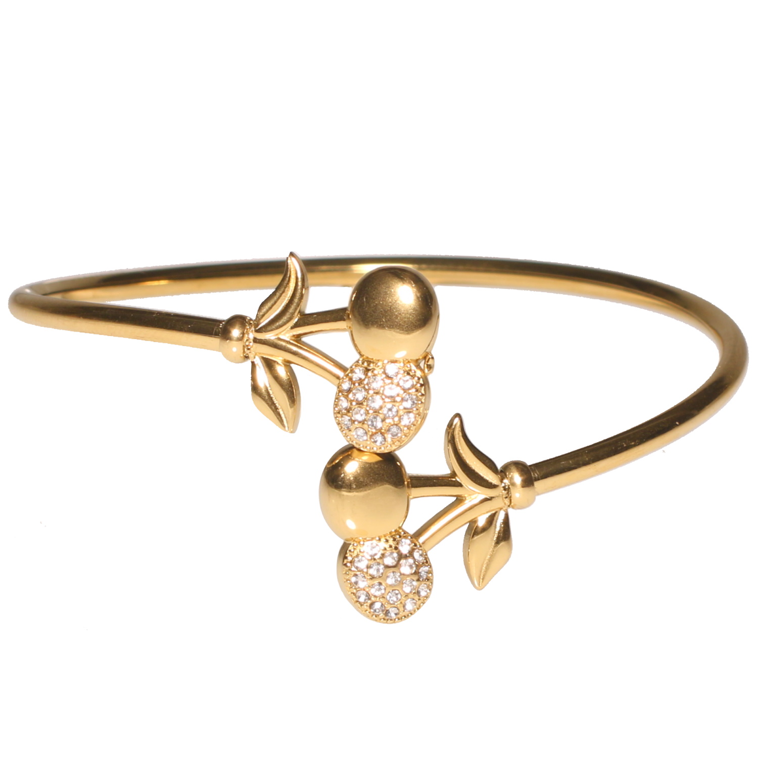 Description Bracelet jonc ouvert en forme de cerises en acier doré et pavées en partie de strass. Cliquez sur une matière, un thème, une couleur ou une collection pour voir tous les articles associés.