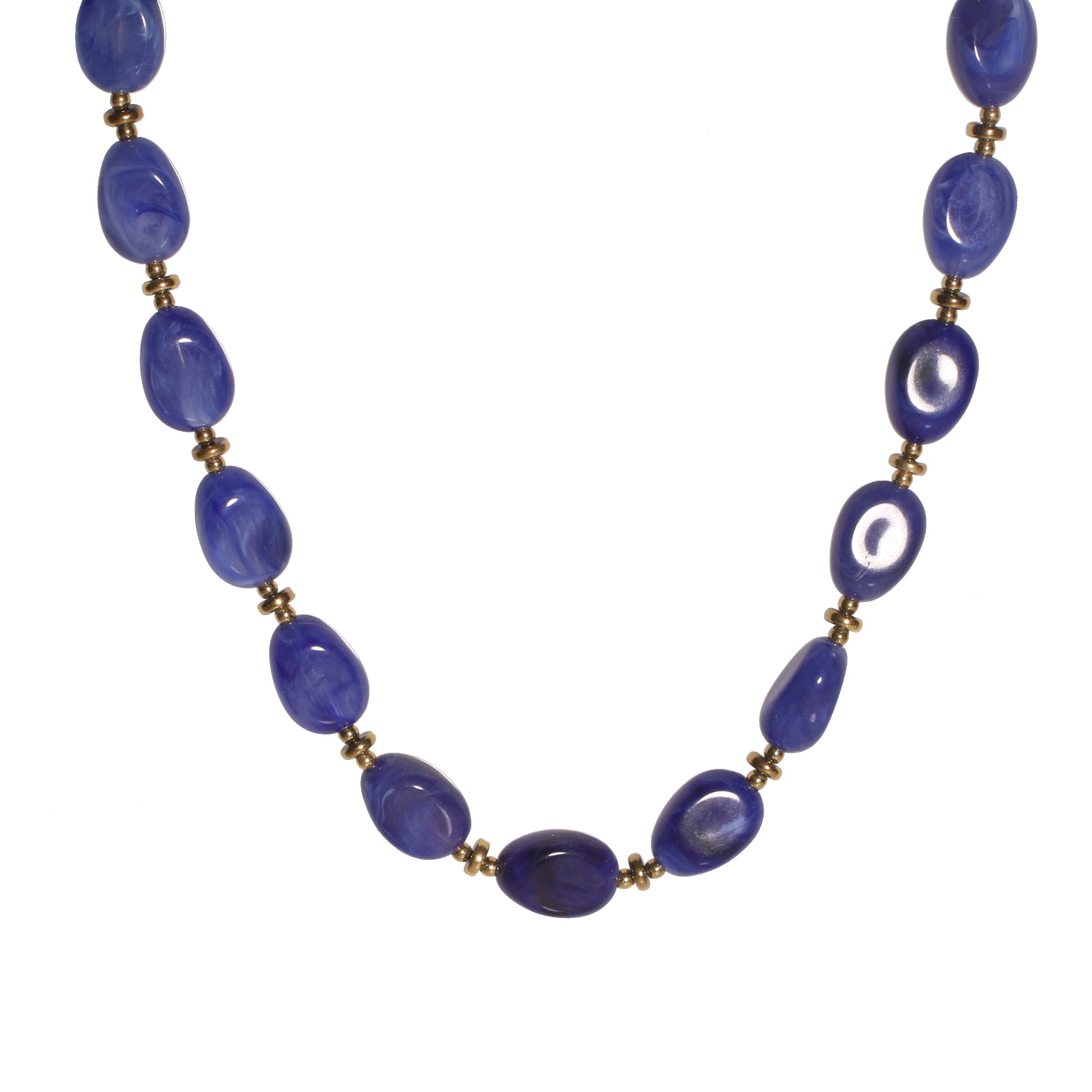 Description Collier composé de perles en acier doré et de perles ovales de couleur bleue. Fermoir mousqueton avec 5 cm de rallonge. Cliquez sur une matière, un thème, une couleur ou une collection pour voir tous les articles associés.