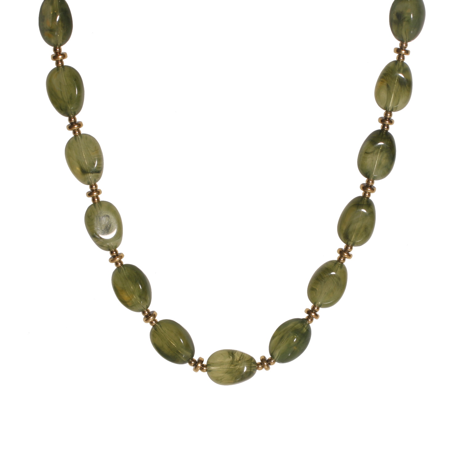Description Collier composé de perles en acier doré et de perles ovales de couleur verte. Fermoir mousqueton avec 5 cm de rallonge. Cliquez sur une matière, un thème, une couleur ou une collection pour voir tous les articles associés.