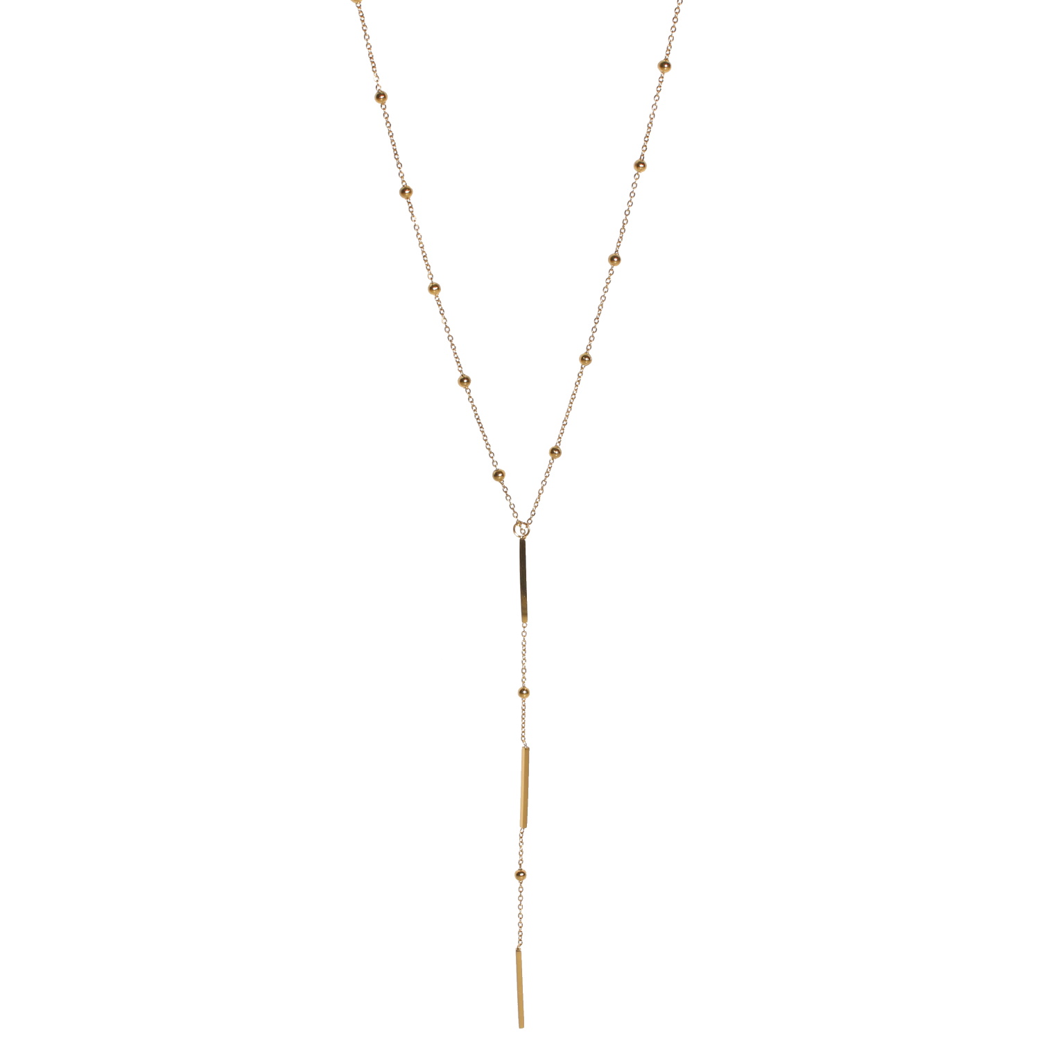 Description Collier sautoir de forme Y composé d'une chaîne avec des perles et des tubes rectangulaires en acier doré. Longueur 64 cm [Guide des tailles] Largeur 3 mm Hauteur 120 mm Matière(s) Acier . L'acier utilisé dans la bijouterie existe sous plusieurs qualités. Nous utilisons principalement la qualité 316L, qualité qui est utilisée en chirurgie. Cet acier est donc inoxydable et reste très résistant. Fermoir Aucun Couleur(s) dominante(s) Doré Public Adolescent , Adulte . Genre Femme , Fille . Saison Indémodable . Cliquez sur une matière, un thème, une couleur ou une collection pour voir tous les articles associés.