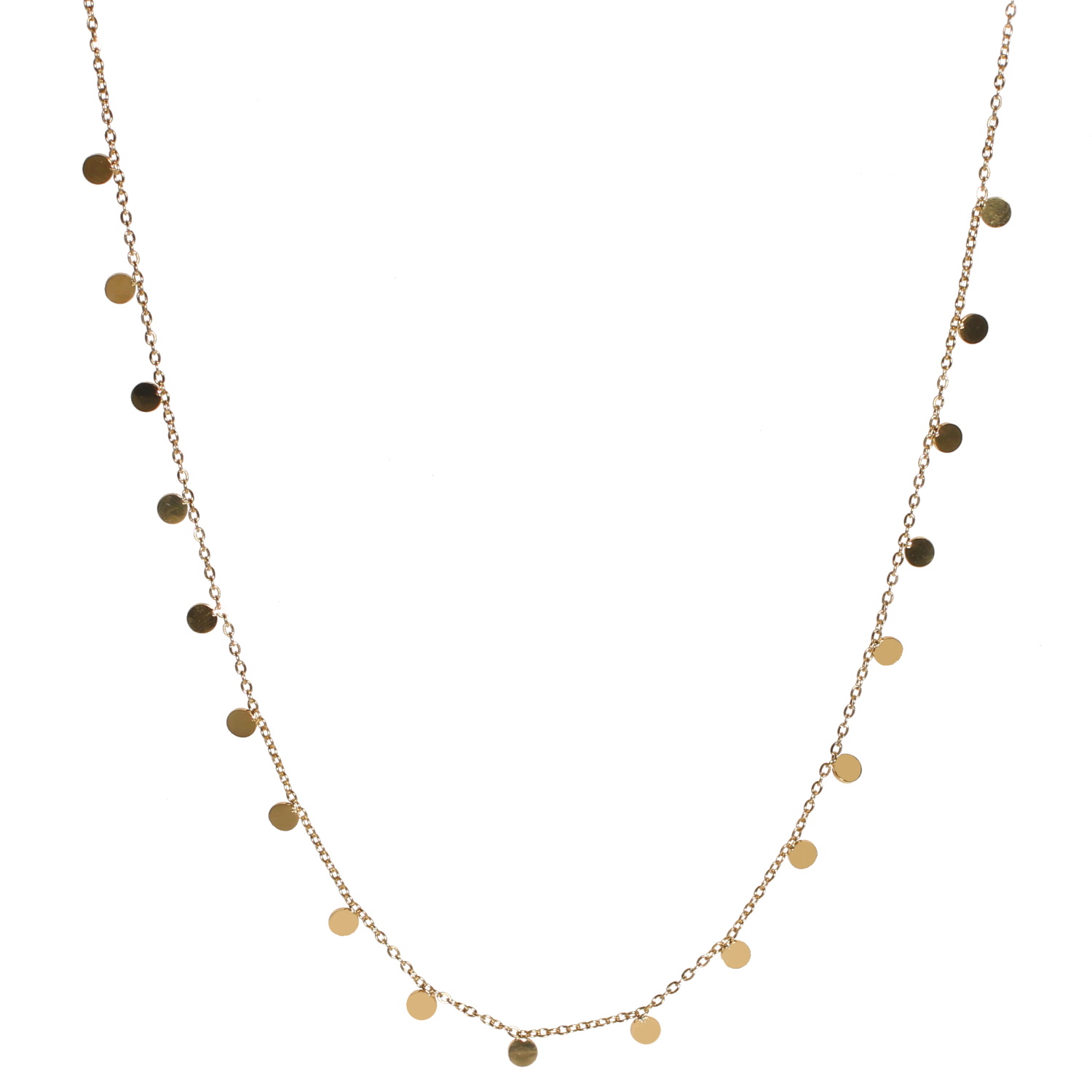 Description Collier composé d'une chaîne avec des pampilles rondes lisses en acier doré. Fermoir mousqueton avec 5 cm de rallonge. Longueur 41+5 cm [Guide des tailles] Largeur 5 mm Matière(s) Acier . L'acier utilisé dans la bijouterie existe sous plusieurs qualités. Nous utilisons principalement la qualité 316L, qualité qui est utilisée en chirurgie. Cet acier est donc inoxydable et reste très résistant. Fermoir Mousqueton Couleur(s) dominante(s) Doré Public Adolescent , Adulte . Genre Femme , Fille . Saison Indémodable . Cliquez sur une matière, un thème, une couleur ou une collection pour voir tous les articles associés.