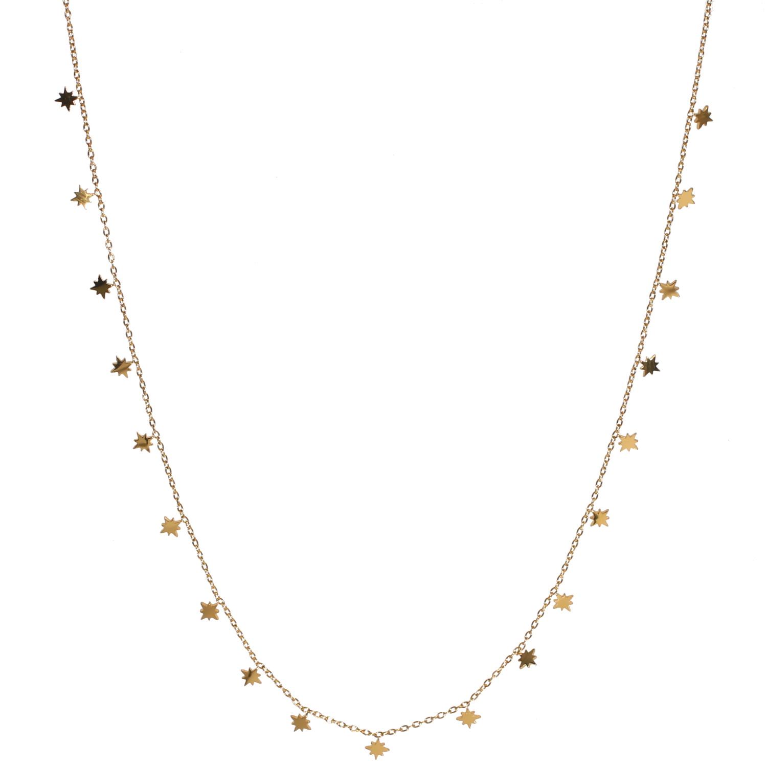 Description Collier composé d'une chaîne et de pampilles en forme d'étoiles en acier doré. Fermoir mousqueton avec 5 cm de rallonge. Longueur 42+5 cm [Guide des tailles] Largeur 5 mm Matière(s) Acier . L'acier utilisé dans la bijouterie existe sous plusieurs qualités. Nous utilisons principalement la qualité 316L, qualité qui est utilisée en chirurgie. Cet acier est donc inoxydable et reste très résistant. Fermoir Mousqueton Couleur(s) dominante(s) Doré Public Adolescent , Adulte . Genre Femme , Fille . Saison Indémodable . Thème(s) Nature . Cliquez sur une matière, un thème, une couleur ou une collection pour voir tous les articles associés.
