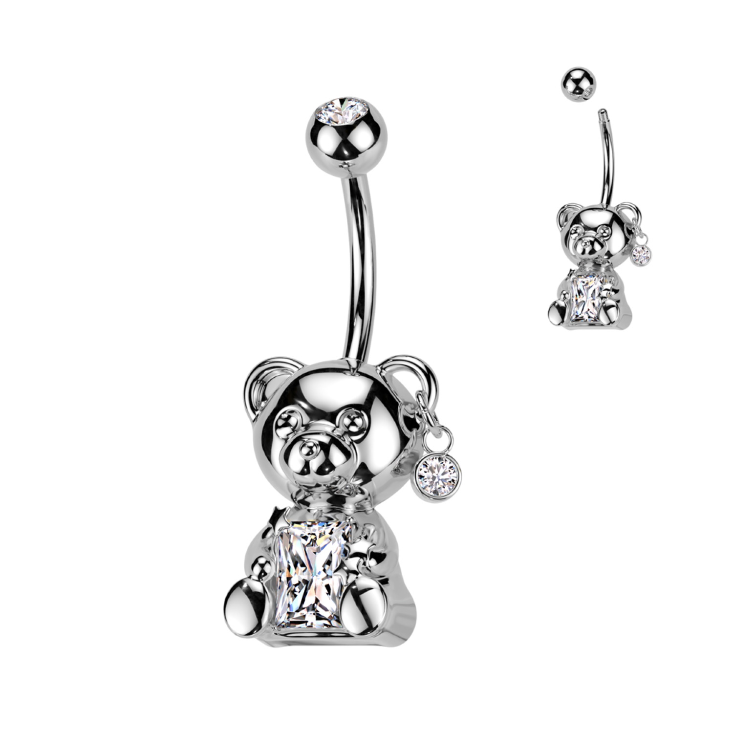 Description Piercing pour nombril en acier chirurgical 316L argenté serti d'un oxyde de zirconium blanc avec un pendant en forme de nounours serti d'un oxyde de zirconium blanc. Largeur 13 mm Hauteur 30 mm Diamètre 1.6 mm Matière(s) Acier , Zirconium . L'acier utilisé dans la bijouterie existe sous plusieurs qualités. Nous utilisons principalement la qualité 316L, qualité qui est utilisée en chirurgie. Cet acier est donc inoxydable et reste très résistant. Fermoir A vis Couleur(s) dominante(s) Argenté Public Adolescent , Adulte . Genre Femme , Fille . Saison Indémodable . Thème(s) Animaux , Nature . Cliquez sur une matière, un thème, une couleur ou une collection pour voir tous les articles associés.