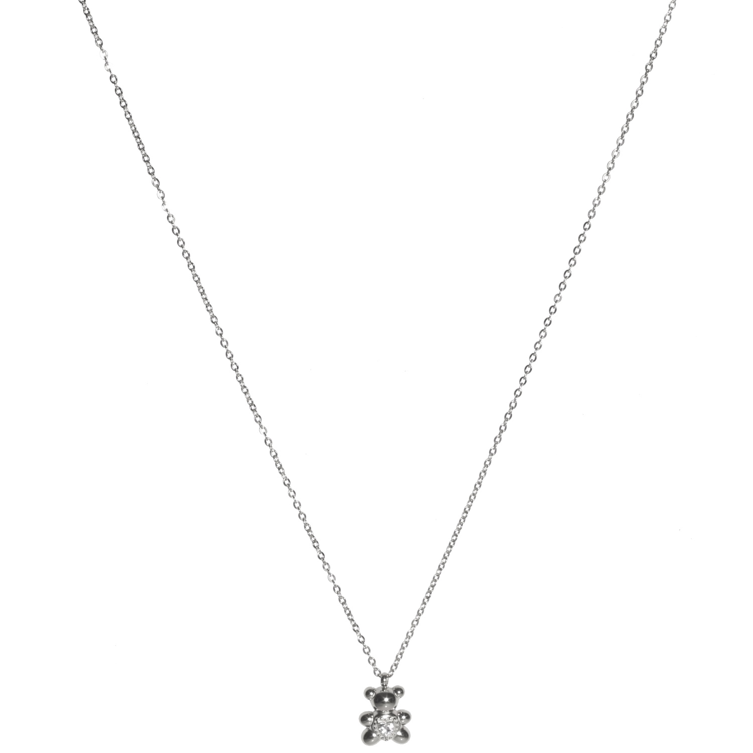 Description Collier composé d'une chaîne en acier argenté et d'un pendentif en forme de nounours serti d'un cristal en forme de cœur. Fermoir mousqueton avec 5 cm de rallonge. Longueur 40+5 cm [Guide des tailles] Matière(s) Acier , Verre . L'acier utilisé dans la bijouterie existe sous plusieurs qualités. Nous utilisons principalement la qualité 316L, qualité qui est utilisée en chirurgie. Cet acier est donc inoxydable et reste très résistant. Fermoir Mousqueton À noter Pendentif 10x15 mm Couleur(s) dominante(s) Argenté Public Adolescent , Adulte . Genre Femme , Fille . Saison Indémodable . Thème(s) Amour , Animaux . Cliquez sur une matière, un thème, une couleur ou une collection pour voir tous les articles associés.
