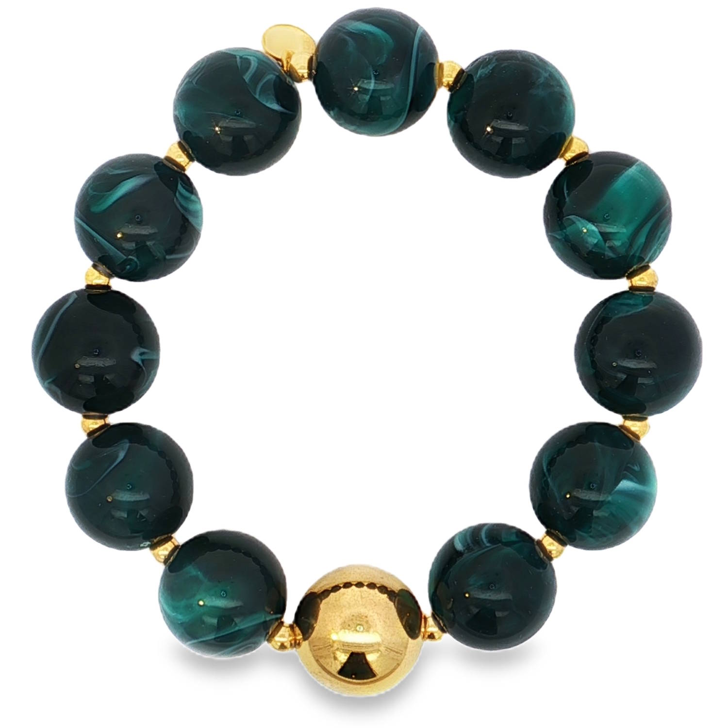 Fabriqué avec un souci du détail, il présente des perles rondes polies en tons vert nuancé, intercalées avec des accents dorés brillants.