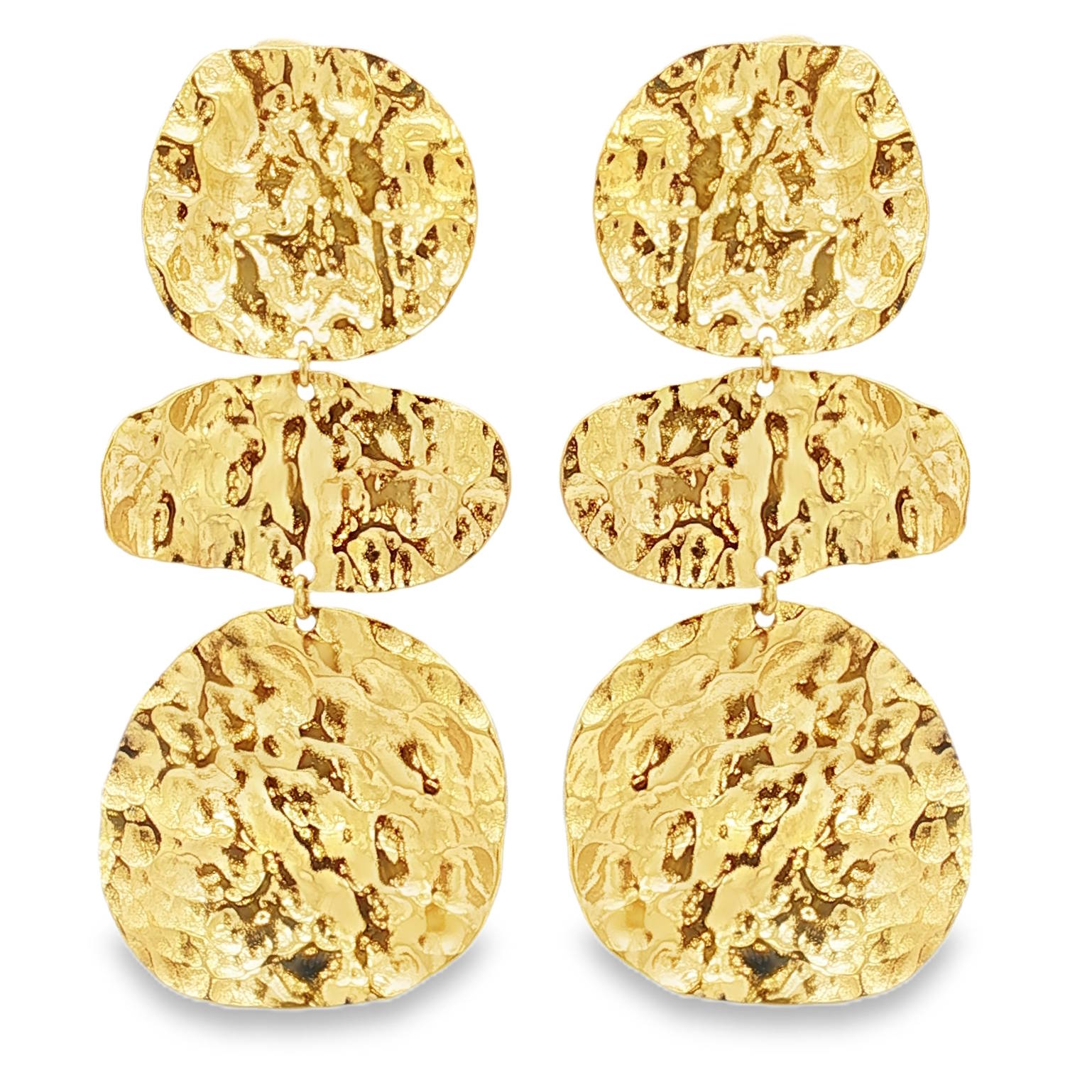 Description Sublimes boucles d'oreilles pendantes en acier doré, un accessoire de mode sophistiqué pour rehausser votre style. Leur conception originale et leur finition martelée ajoutent une touche d'élégance unique à chaque tenue. Un bijou parfait pour illuminer votre visage et attirer tous les regards. Largeur 27 mm Hauteur 60 mm Matière(s) Acier . L'acier utilisé dans la bijouterie existe sous plusieurs qualités. Nous utilisons principalement la qualité 316L, qualité qui est utilisée en chirurgie. Cet acier est donc inoxydable et reste très résistant. Fermoir Tiges poussettes Couleur(s) dominante(s) Doré Public Adolescent , Adulte . Genre Femme , Fille . Saison Indémodable . Cliquez sur une matière, un thème, une couleur ou une collection pour voir tous les articles associés.