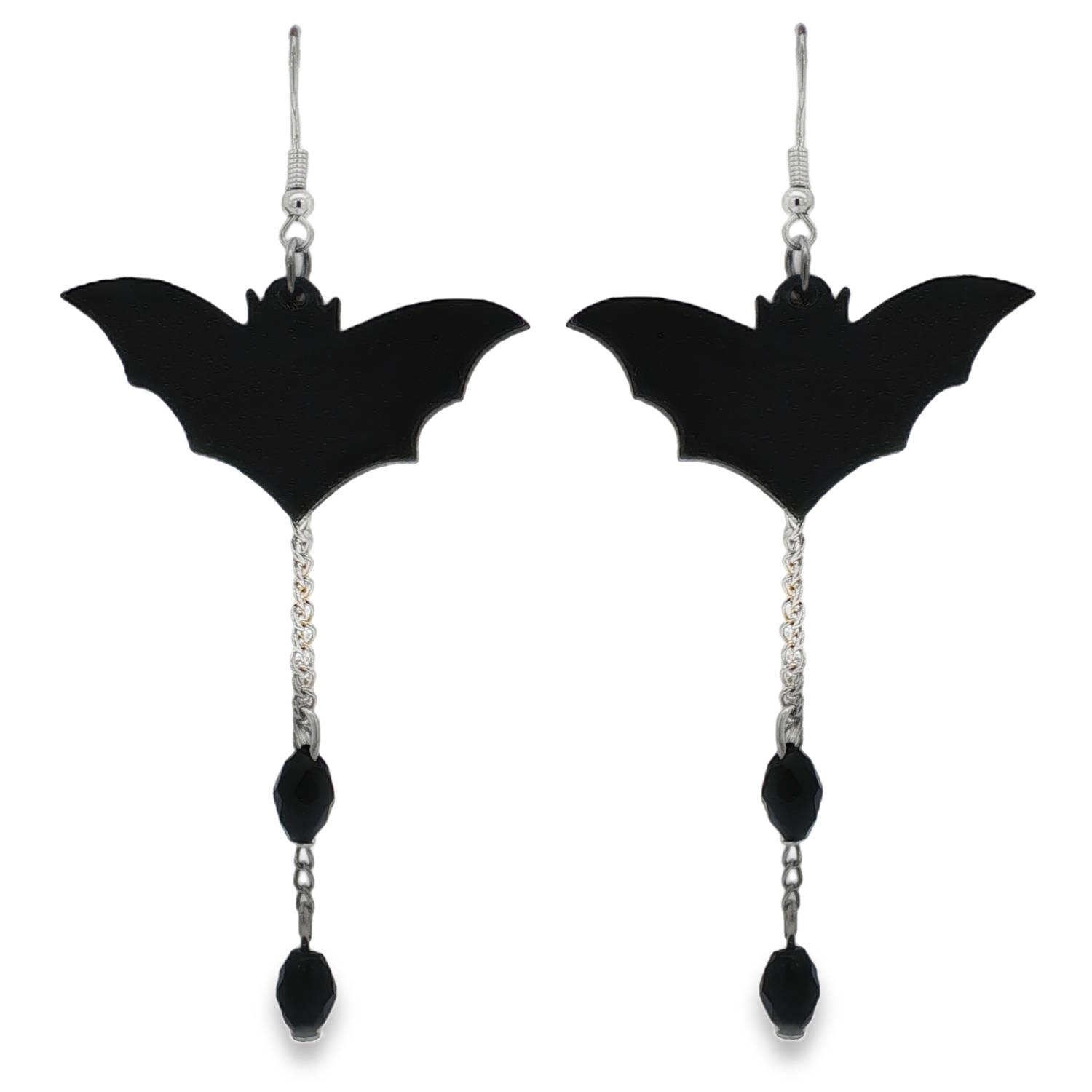 Elles présentent un motif de chauve-souris suspendu à une délicate chaîne, ornée de perles noires facettées.