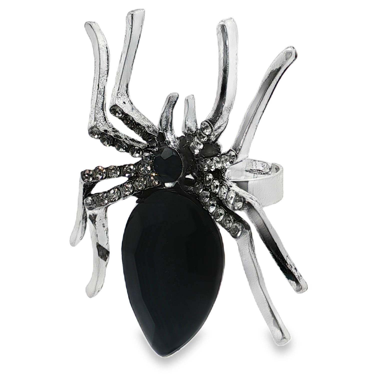 Arborez un style audacieux avec cette bague cocktail araignée, finement ouvragée en métal argenté.