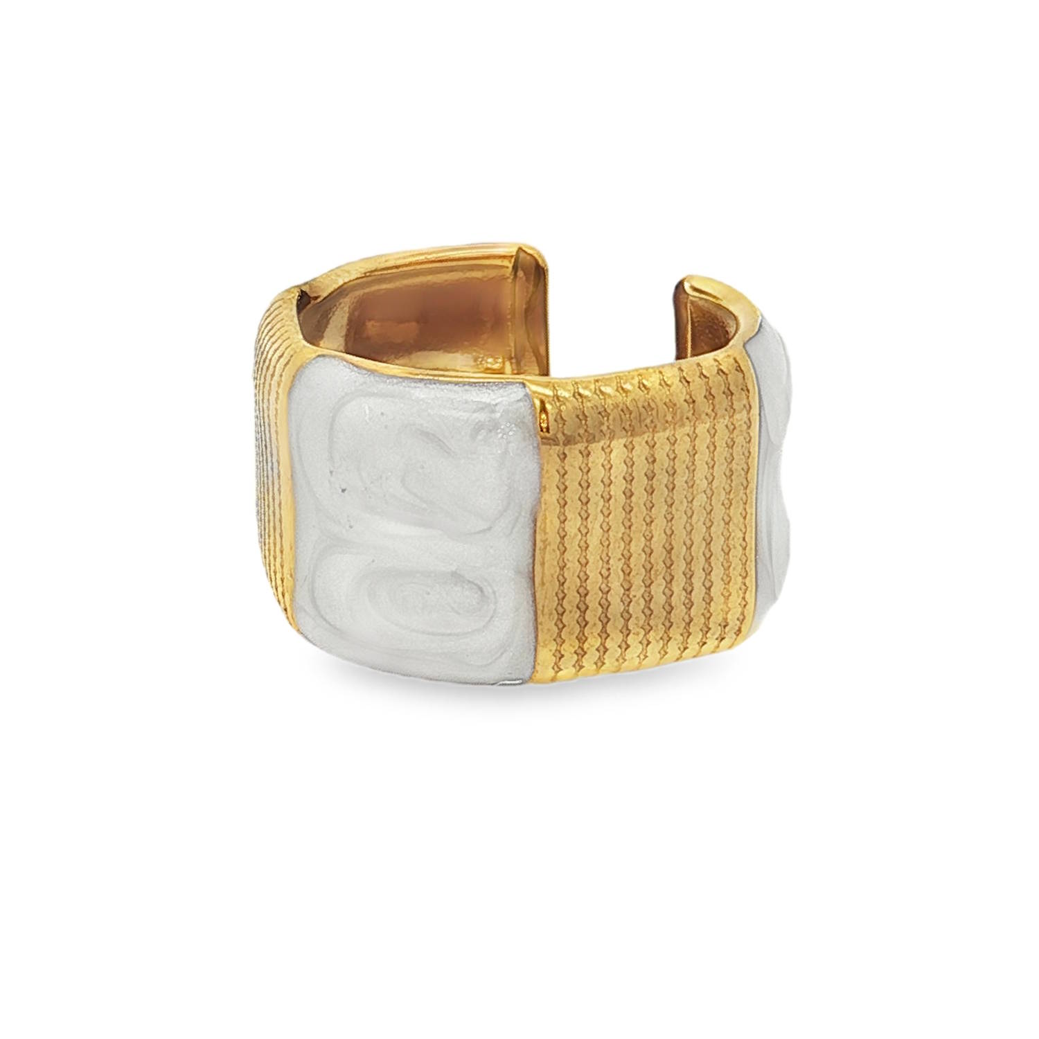 Bague bandeau moderne en acier doré, fusion d'élégance et de simplicité.<br/>Son design épuré, rehaussé de détails texturés, en fait un bijou polyvalent, parfait pour ajouter une touche de sophistication discrète à toute tenue.<br/>Un accessoire intemporel qui allie confort et style.<br/>Taille ajustable.  Adolescent Adulte Automne Femme Fille Hiver