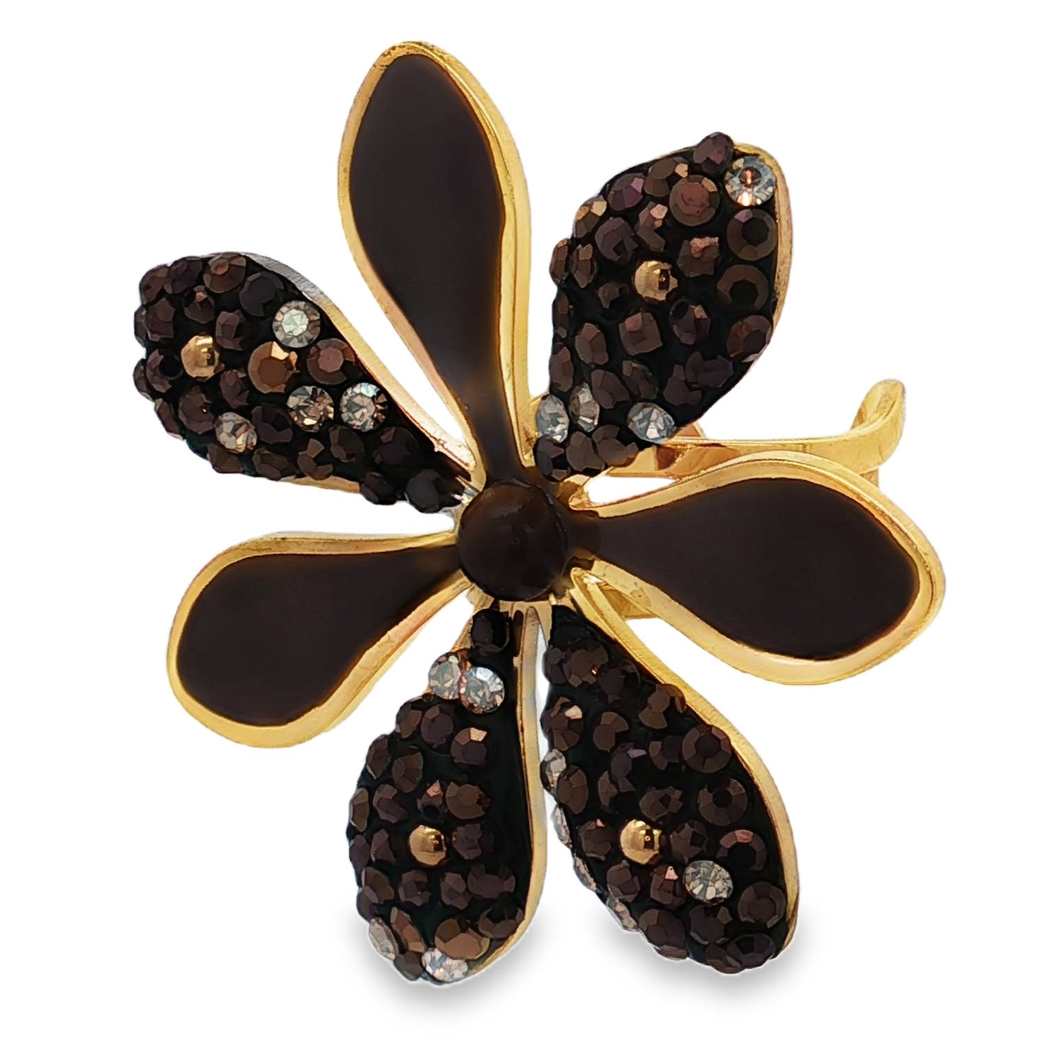 Sublime bague cocktail en acier doré, une pièce d'exception qui allie l'éclat chaleureux du métal précieux à un design floral captivant.