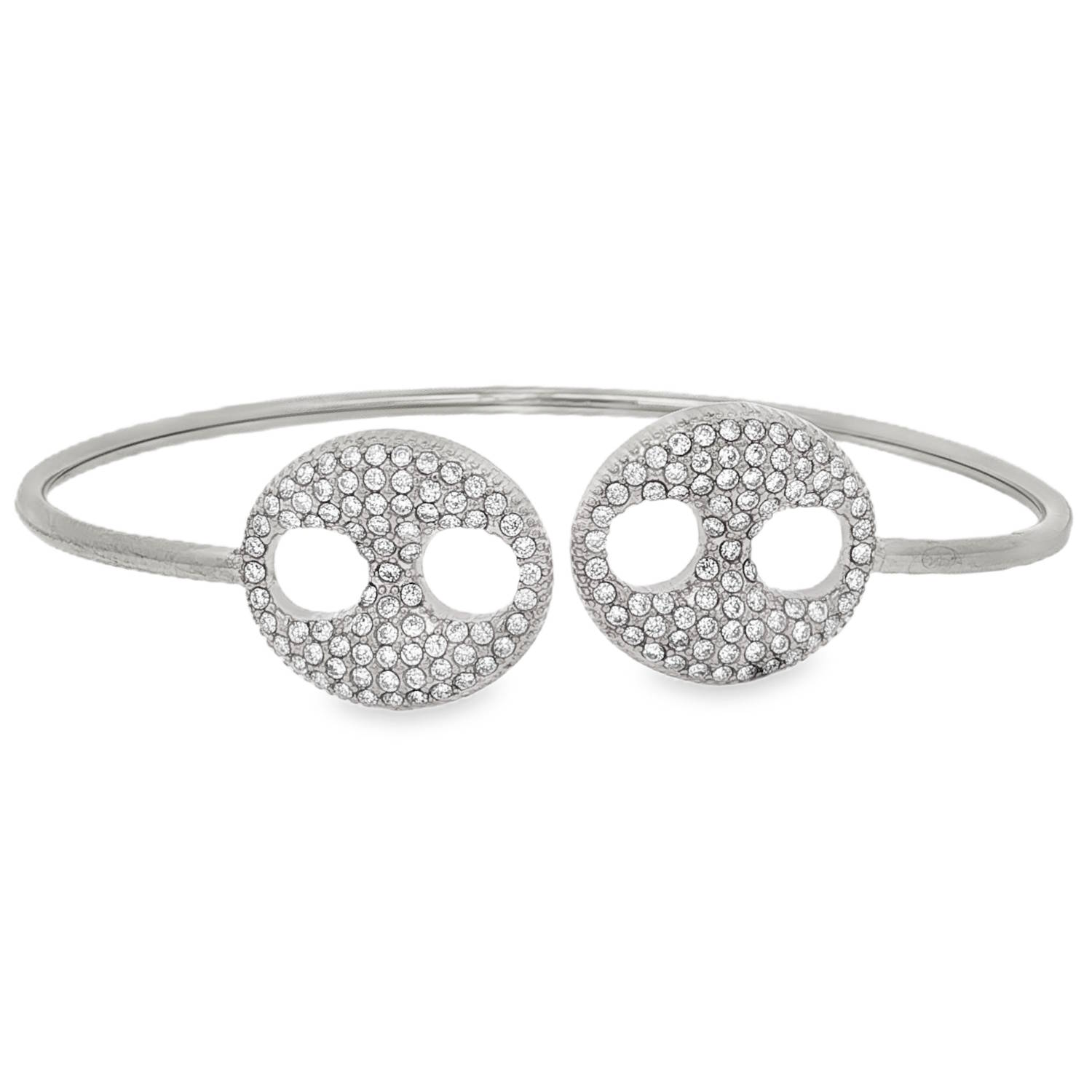 Ce bracelet jonc en acier argenté incarne l'élégance discrète.