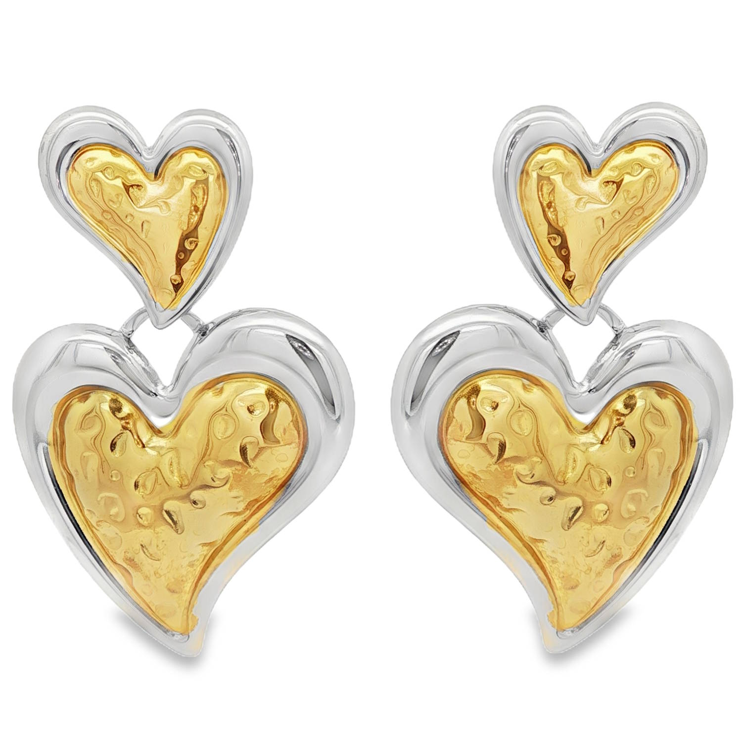 Description Rehaussez votre style avec ces boucles d'oreilles pendantes uniques. Elles se distinguent par leurs deux cœurs imbriqués, alliant la brillance de l'acier argenté à l'éclat chaleureux de l'acier doré texturé. Un design élégant pour une touche de raffinement au quotidien. Largeur 40 mm Hauteur 62 mm Matière(s) Acier . L'acier utilisé dans la bijouterie existe sous plusieurs qualités. Nous utilisons principalement la qualité 316L, qualité qui est utilisée en chirurgie. Cet acier est donc inoxydable et reste très résistant. Fermoir Tiges poussettes Couleur(s) dominante(s) Argenté , Doré Public Adolescent , Adulte . Genre Femme , Fille . Saison Indémodable . Thème(s) Amour . Cliquez sur une matière, un thème, une couleur ou une collection pour voir tous les articles associés.
