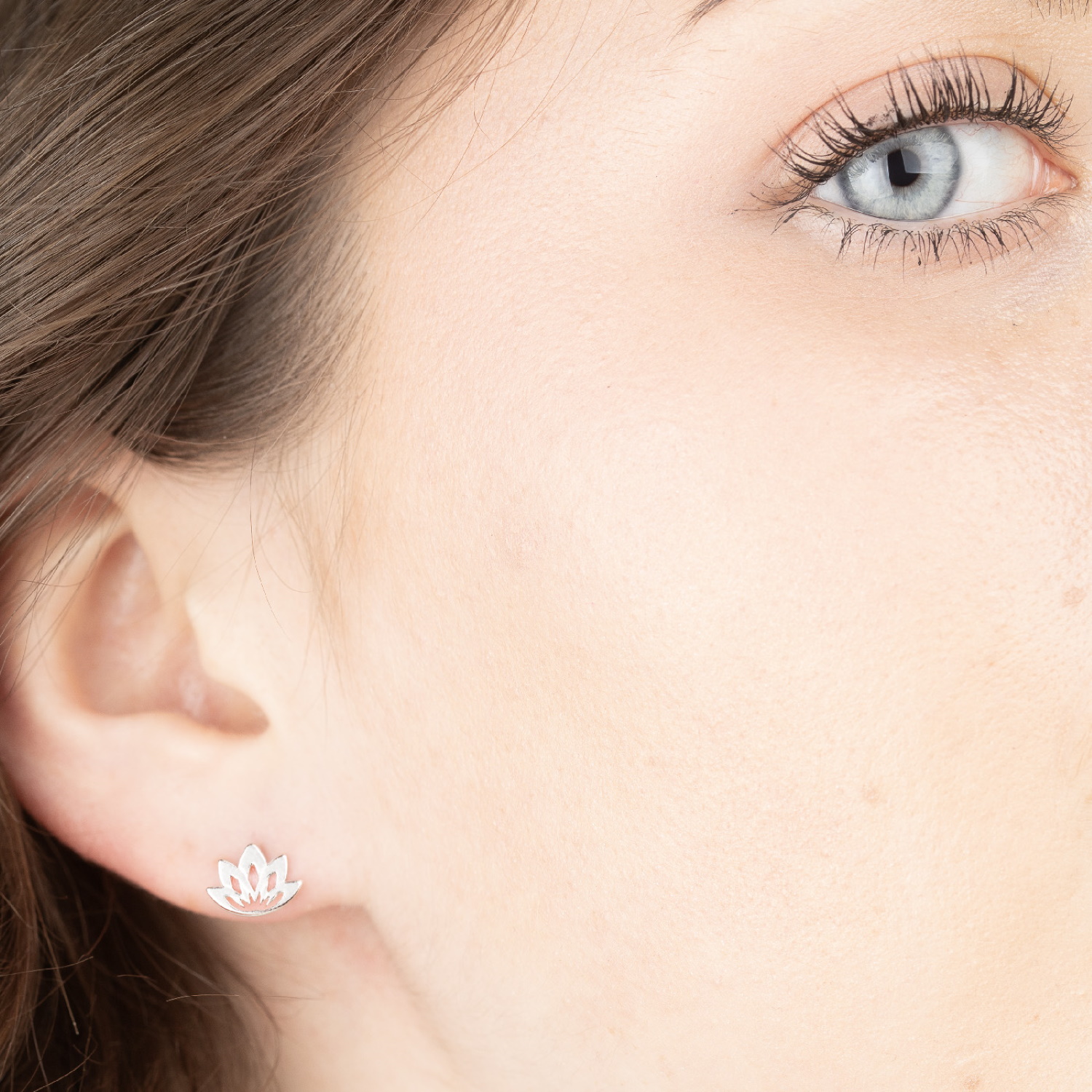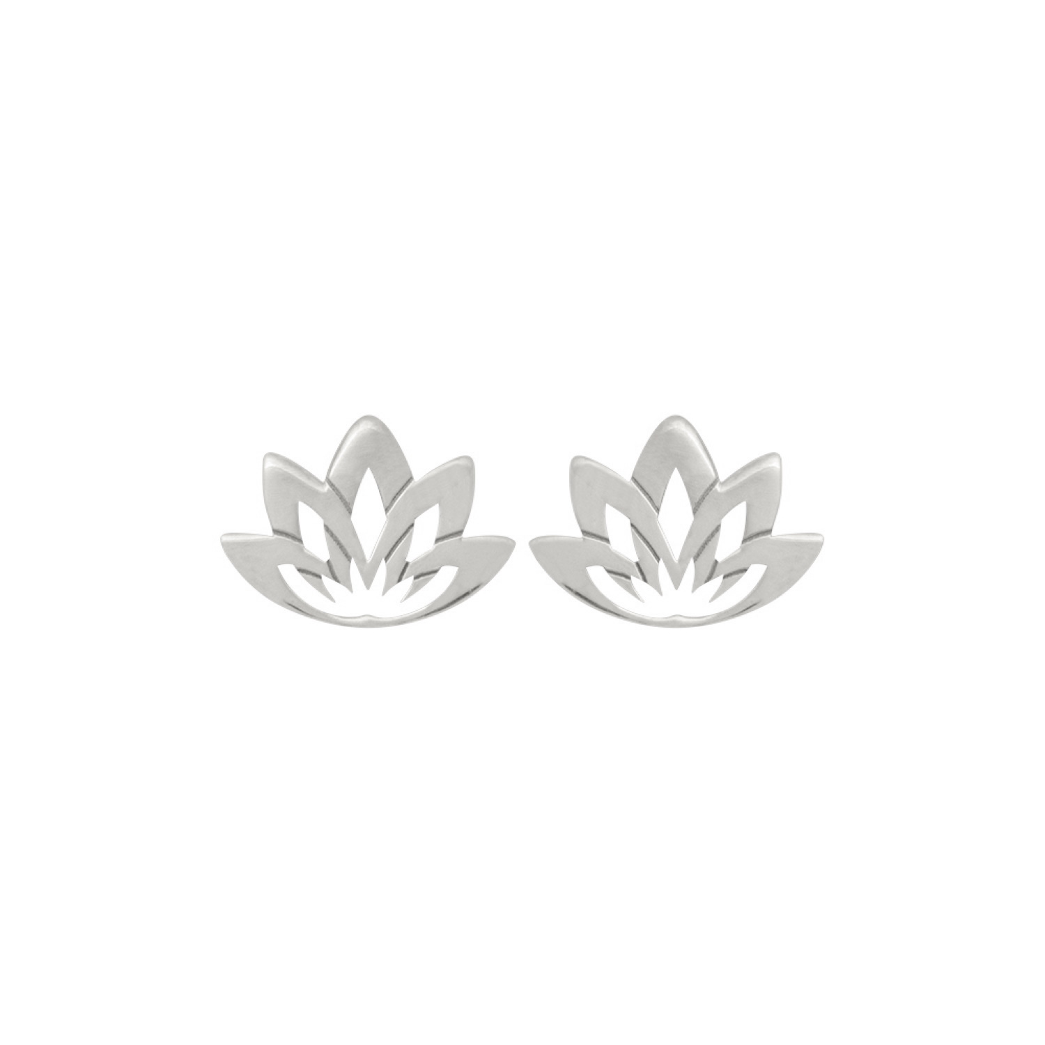 Boucles d'oreilles puces en forme de fleur de lotus en argent 925 rhodié.