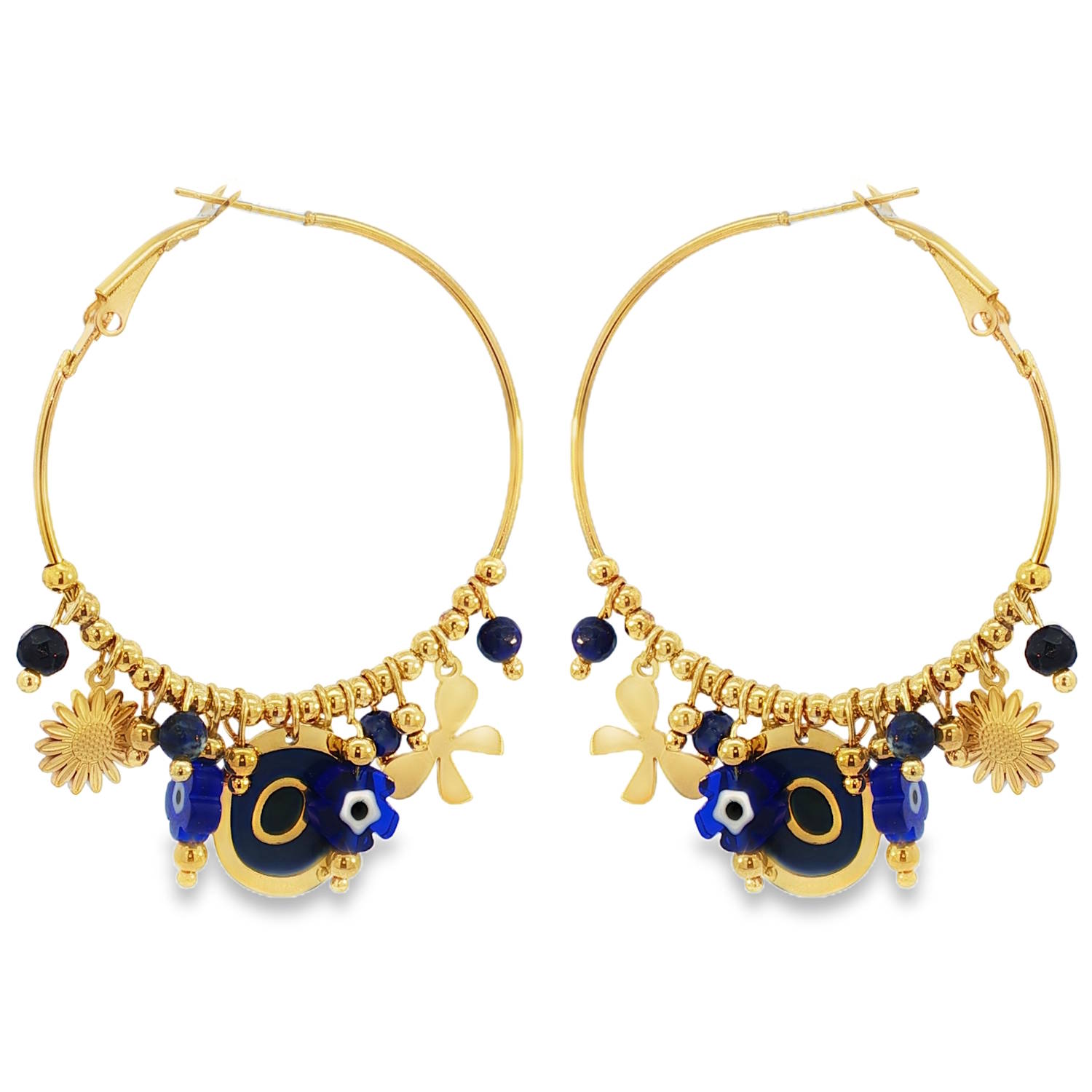Leur design unique est rehaussé de breloques délicates, incluant des motifs floraux et des perles bleues scintillantes, ajoutant une touche d'élégance et de fantaisie à votre allure.