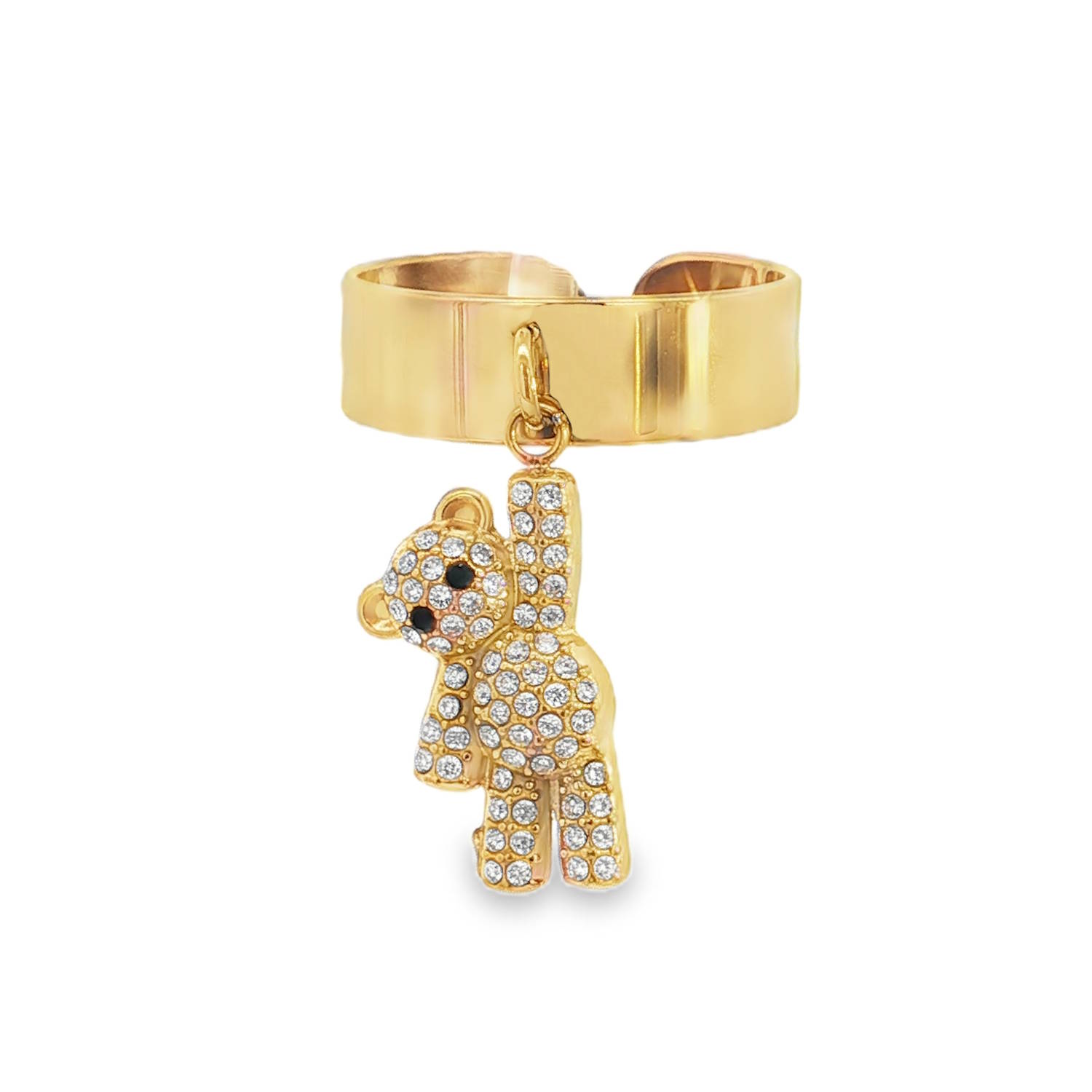 Cette bague bandeau en acier doré offre un éclat chaleureux et une esthétique moderne.