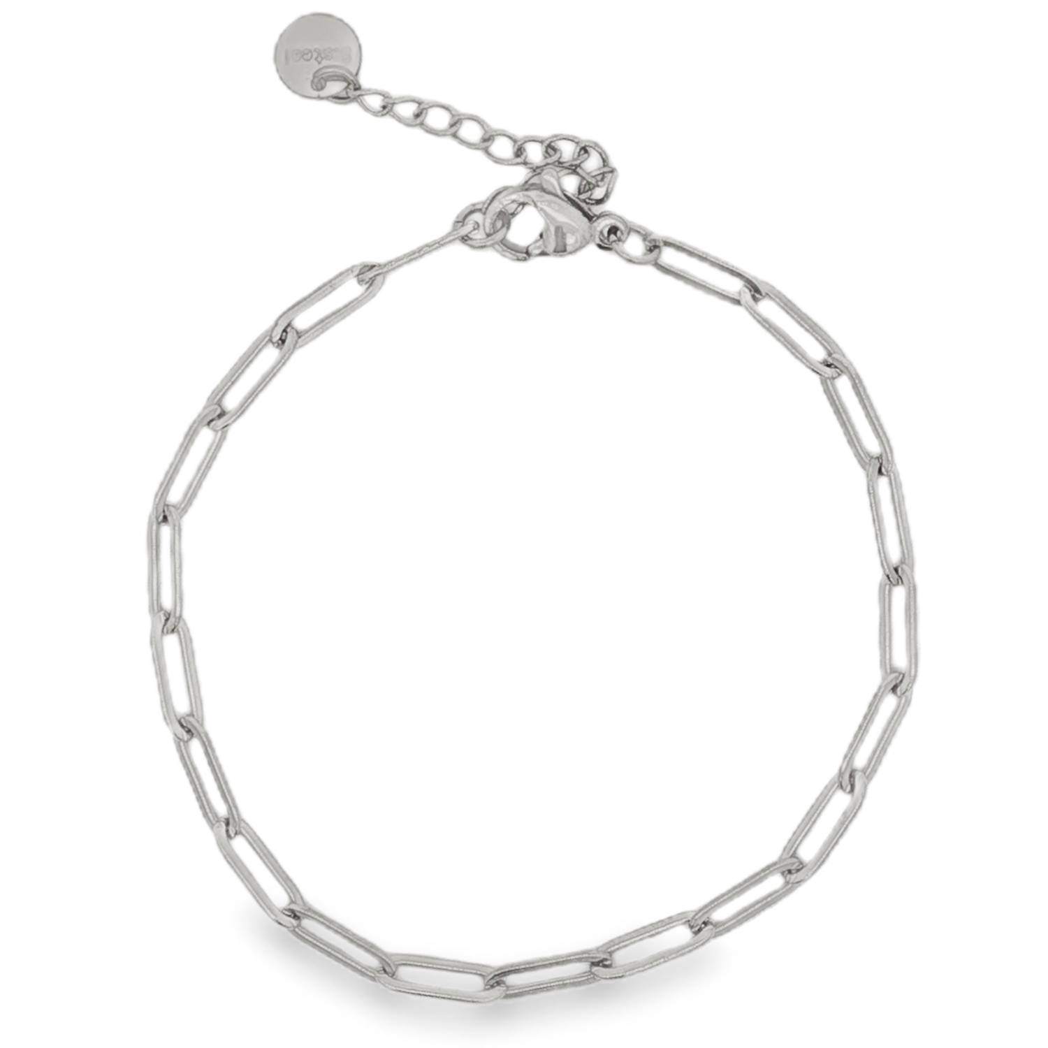 Rehaussez votre style avec ce bracelet chaîne en acier argenté.