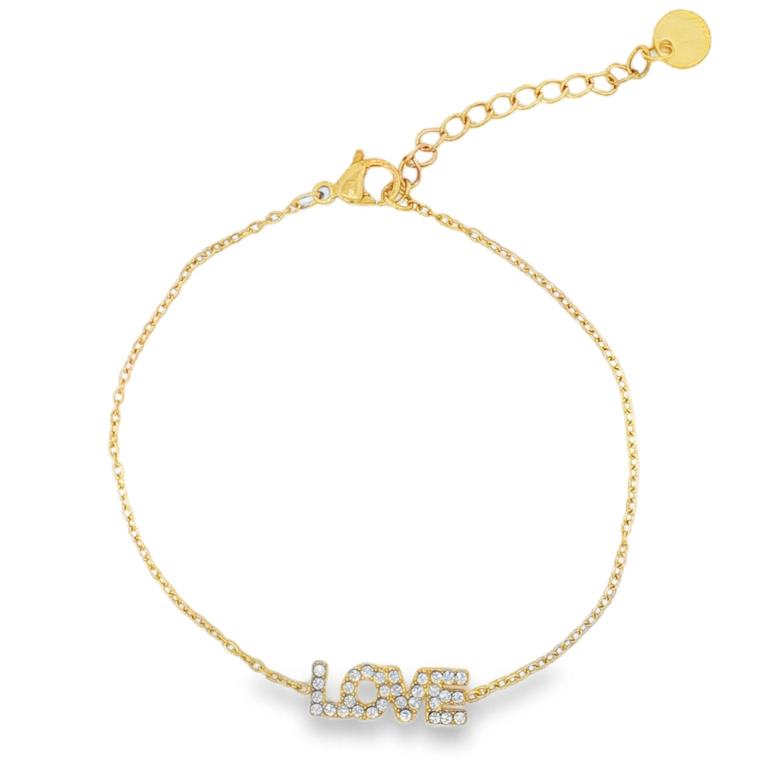 Exprimez votre affection avec ce délicat bracelet chaîne en acier doré, orné du mot "LOVE" serti de strass ronds brillants.