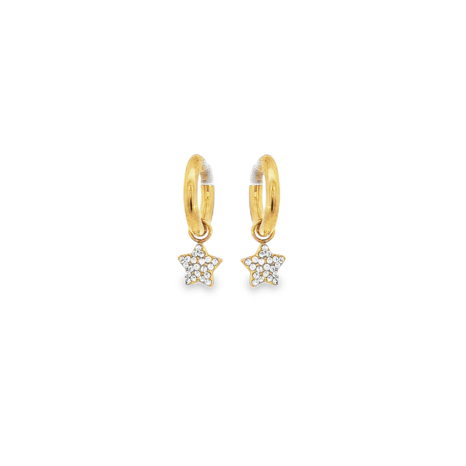Rehaussez votre éclat avec ces élégantes créoles en acier doré, sublimées par un charm délicat en forme d'étoile pavée de strass taille brillant.
