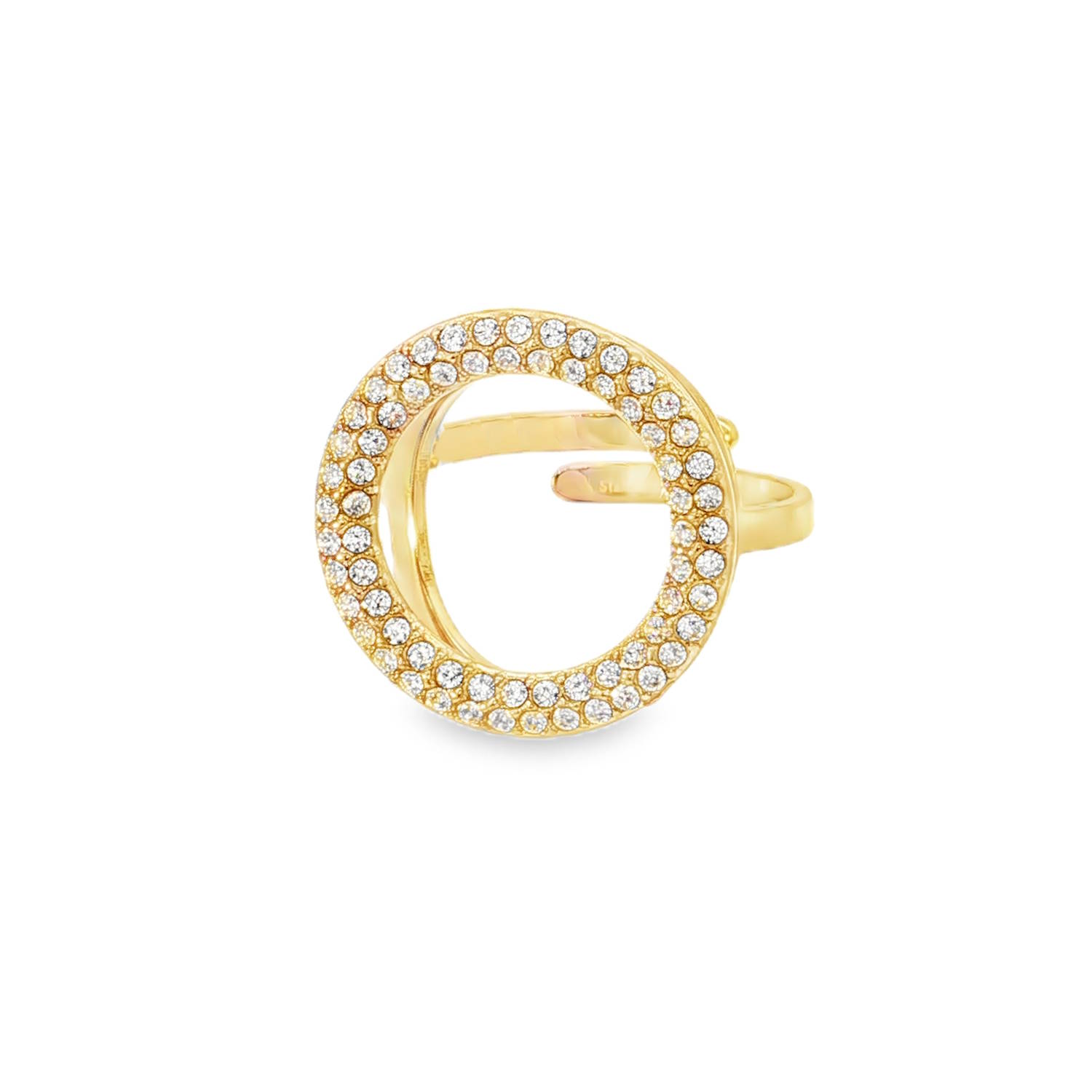 Le design moderne présente un cercle pavé de strass taille brillant, capturant la lumière à chaque mouvement.