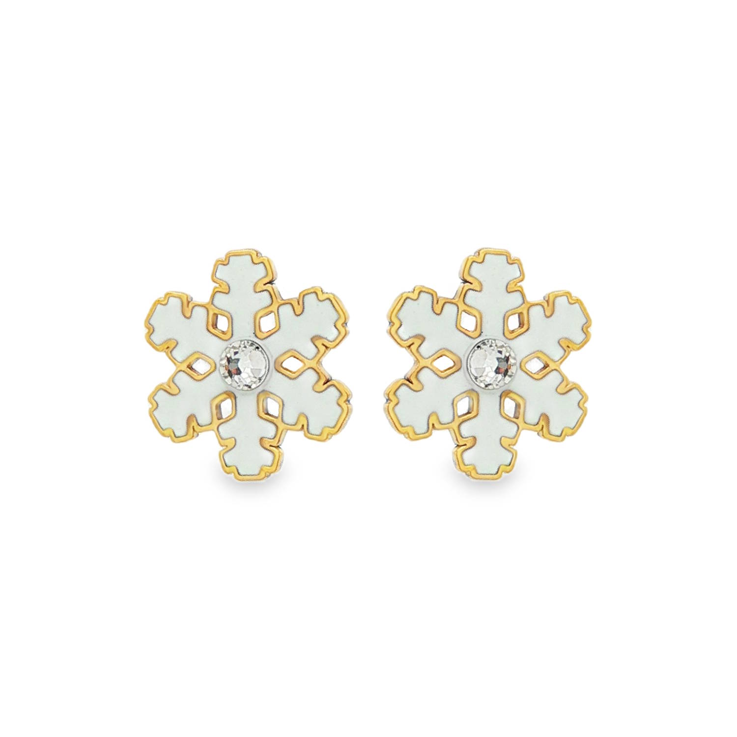Sublimes boucles d'oreilles en forme de flocon de neige, finement réalisée en acier doré.
