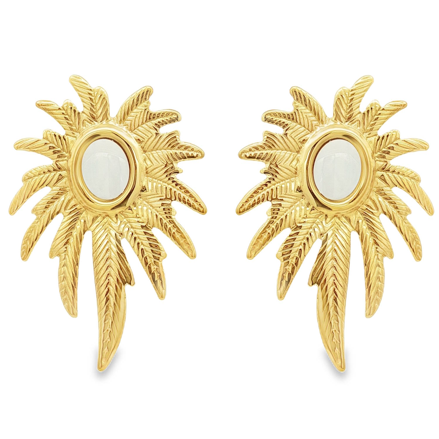 Boucles d'oreilles plante en acier doré, une pièce rayonnante.