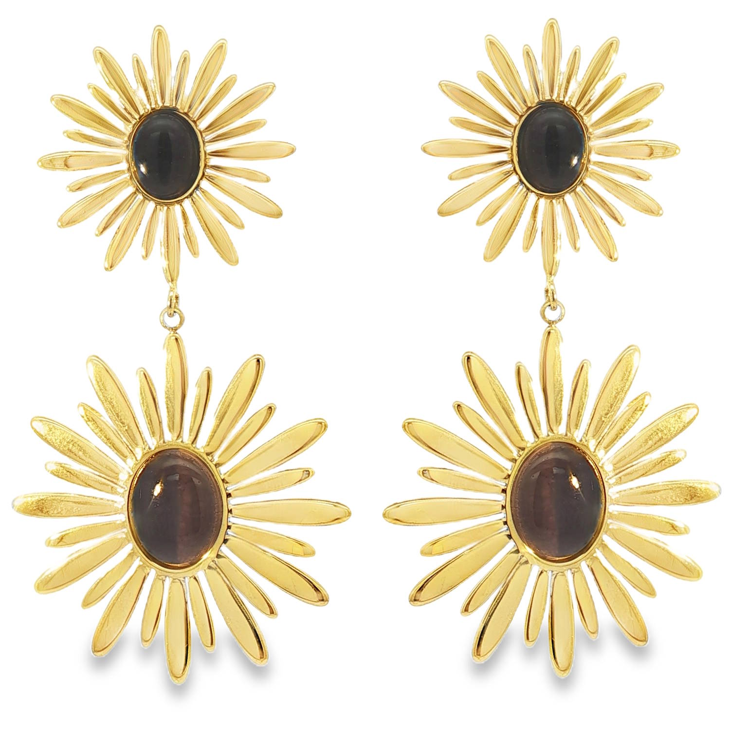 Leur design floral est rehaussé par des pierres marrons cabochons, qui offrent un contraste chaleureux et captivant.