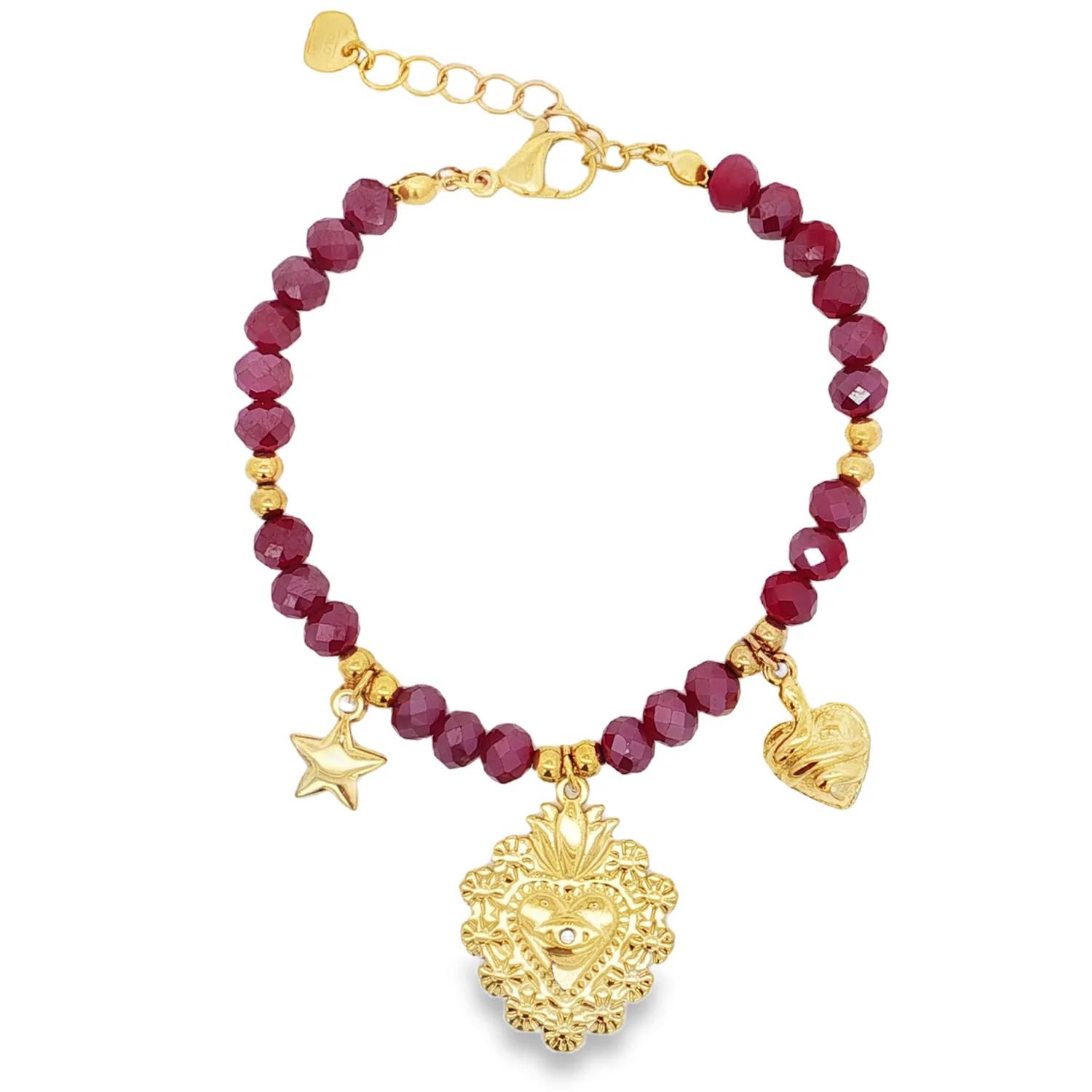 Ce bracelet charmant en acier doré présente un design éclatant.