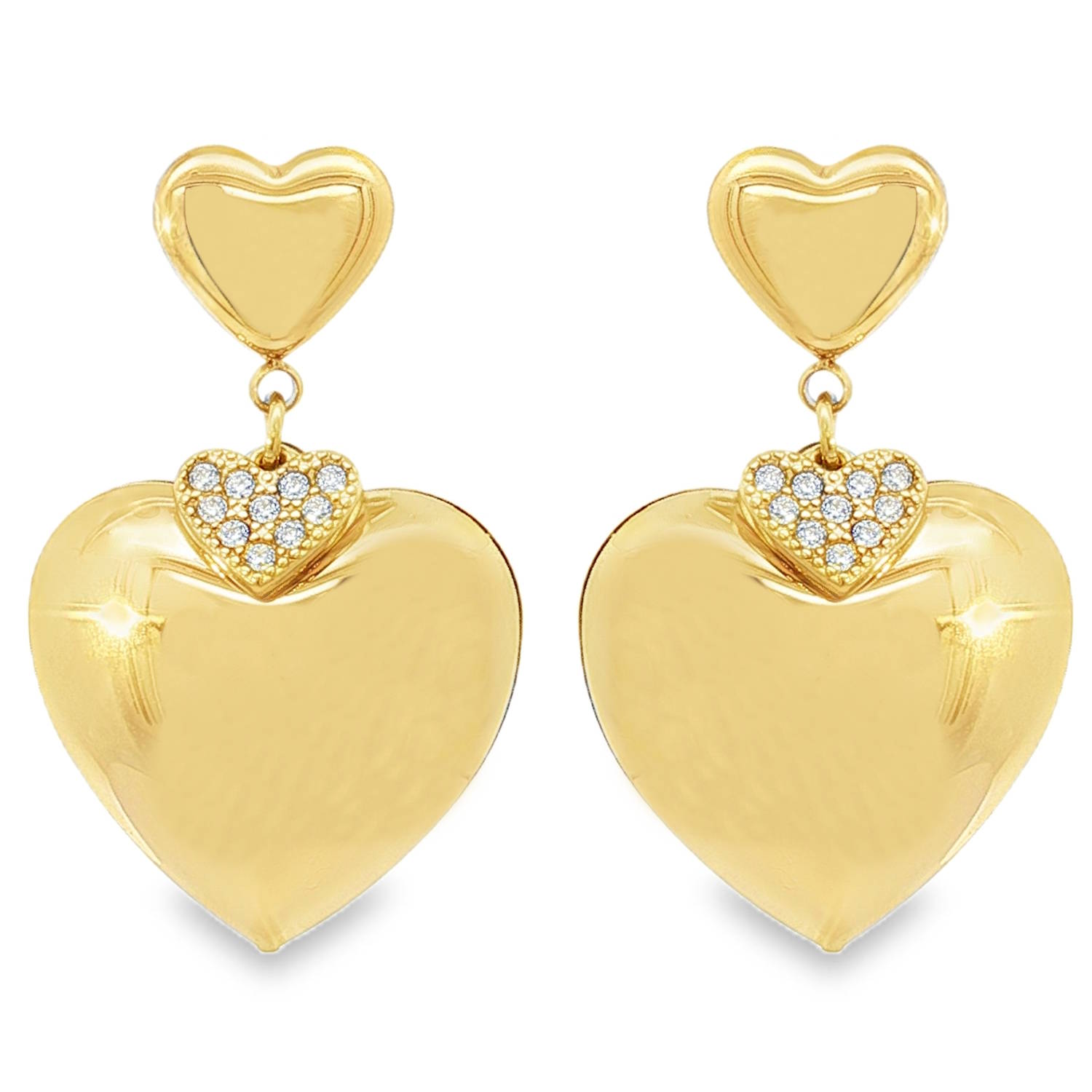 Description Illuminez votre style avec ces ravissantes boucles d'oreilles pendantes en acier doré. Le design en forme de cœur, sublimé par des strass taille brillant, confère une élégance irrésistible. L'éclat et la pureté du strass mettent en valeur l'éclat chaleureux du doré, créant un bijou sophistiqué et romantique, parfait pour toutes les occasions. Largeur 22 mm Hauteur 35 mm Matière(s) Acier , Verre . L'acier utilisé dans la bijouterie existe sous plusieurs qualités. Nous utilisons principalement la qualité 316L, qualité qui est utilisée en chirurgie. Cet acier est donc inoxydable et reste très résistant. Fermoir Tiges poussettes Couleur(s) dominante(s) Doré Public Adolescent , Adulte . Genre Femme , Fille . Saison Indémodable . Thème(s) Amour . Cliquez sur une matière, un thème, une couleur ou une collection pour voir tous les articles associés.