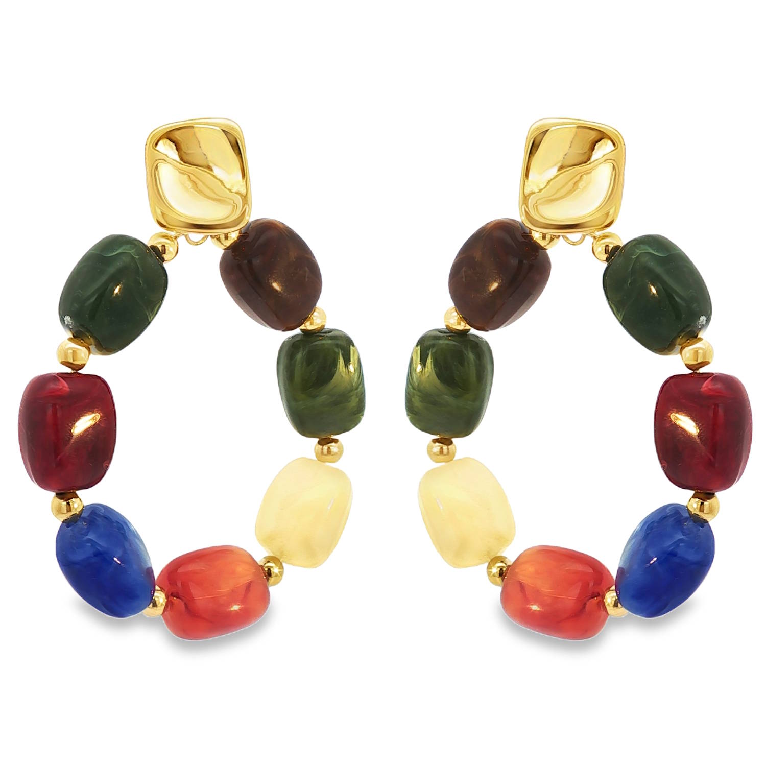 Description Sublimes boucles d'oreilles créoles en acier doré, ornées de perles multicolores. Chaque perle cabochon met en valeur les nuances variées de la pierre, apportant une touche d'élégance naturelle et de couleur à votre style. Un bijou raffiné, parfait pour toutes les occasions. Largeur 47 mm Hauteur 60 mm Matière(s) Acier , Résine . L'acier utilisé dans la bijouterie existe sous plusieurs qualités. Nous utilisons principalement la qualité 316L, qualité qui est utilisée en chirurgie. Cet acier est donc inoxydable et reste très résistant. Fermoir Tiges poussettes Couleur(s) dominante(s) Doré , Multicolore Public Adolescent , Adulte . Genre Femme , Fille . Saison Indémodable . Cliquez sur une matière, un thème, une couleur ou une collection pour voir tous les articles associés.