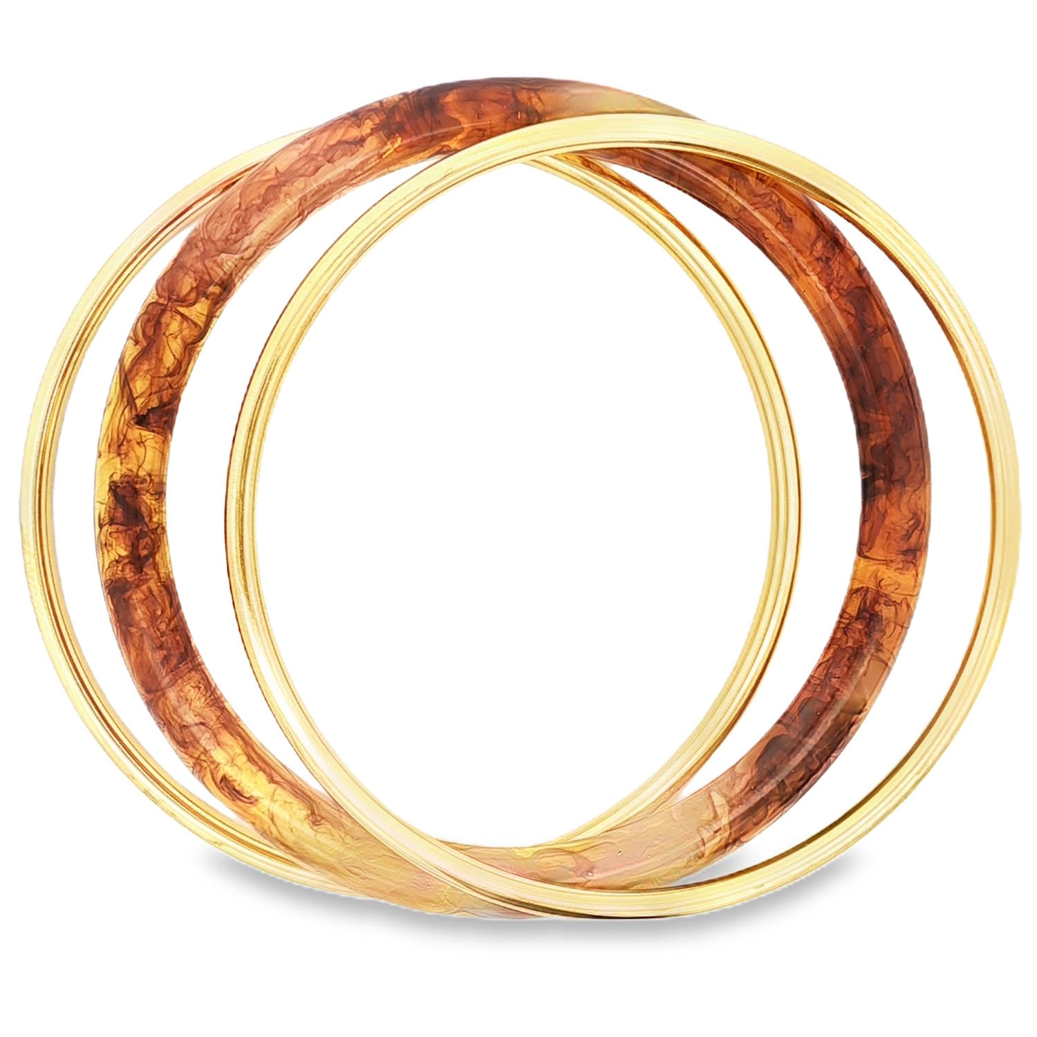 Confectionnés en acier doré étincelant, ces bracelets rigides présentent un design intemporel et sophistiqué.