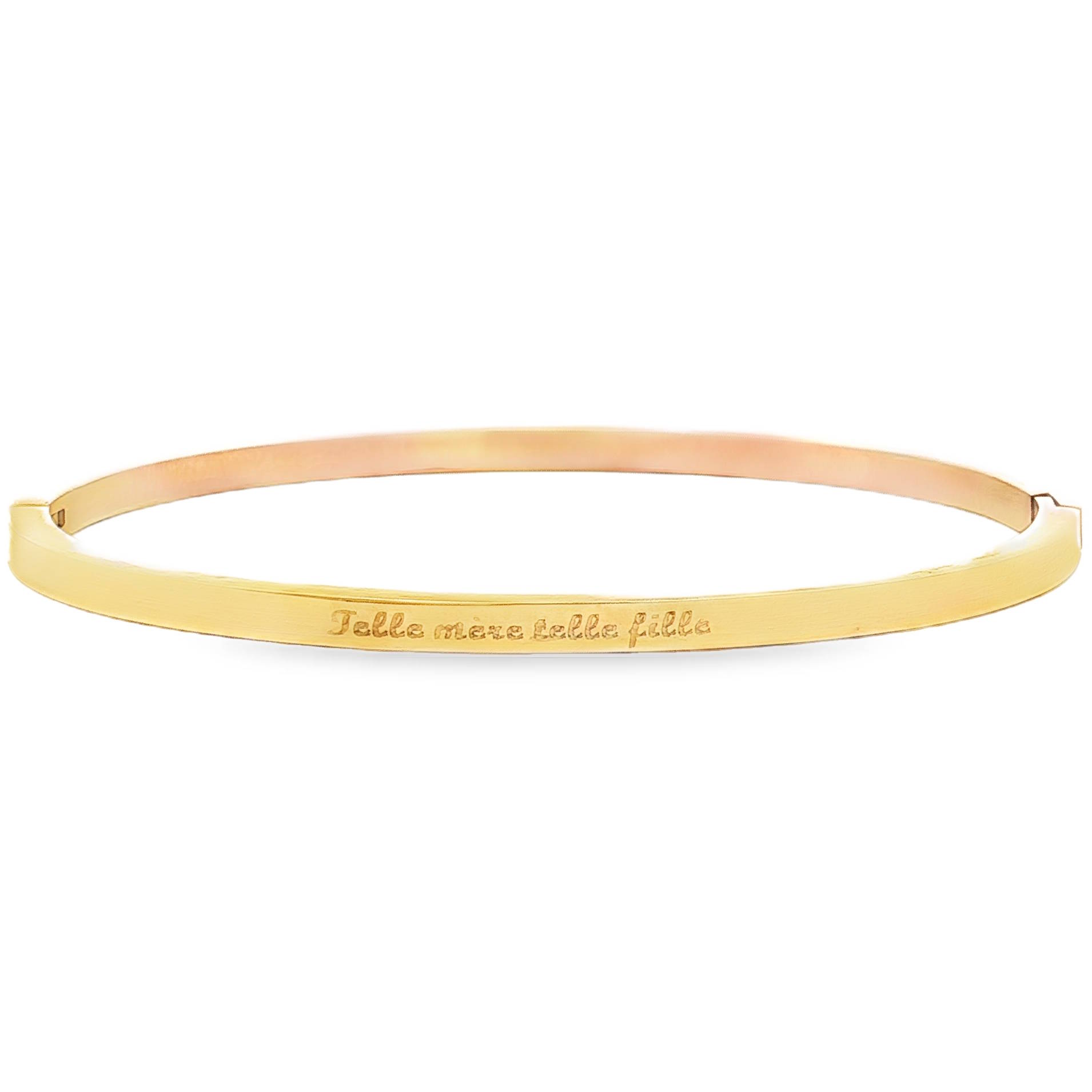 Ce bracelet jonc en acier doré est un hommage à la relation unique entre une mère et sa fille.