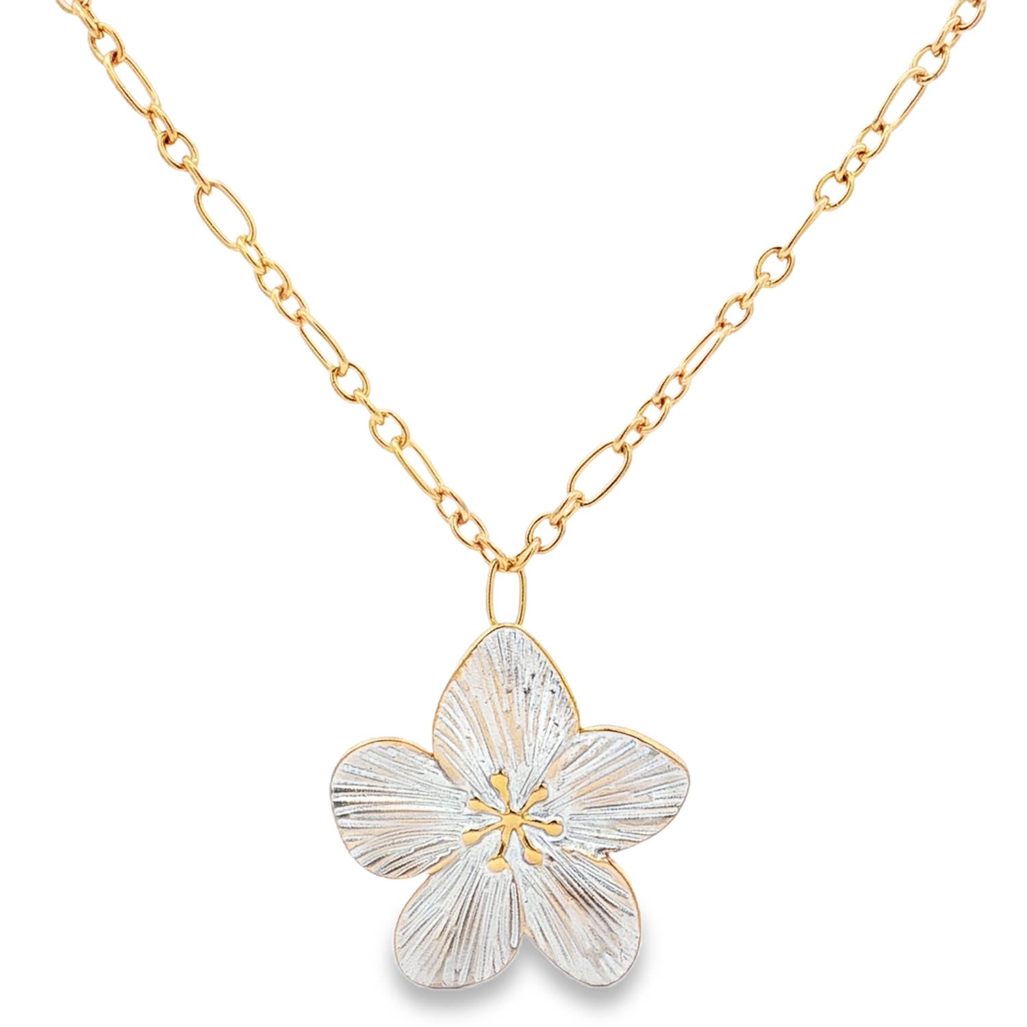 Ce délicat collier, en acier doré étincelant, met en valeur un pendentif floral raffiné.