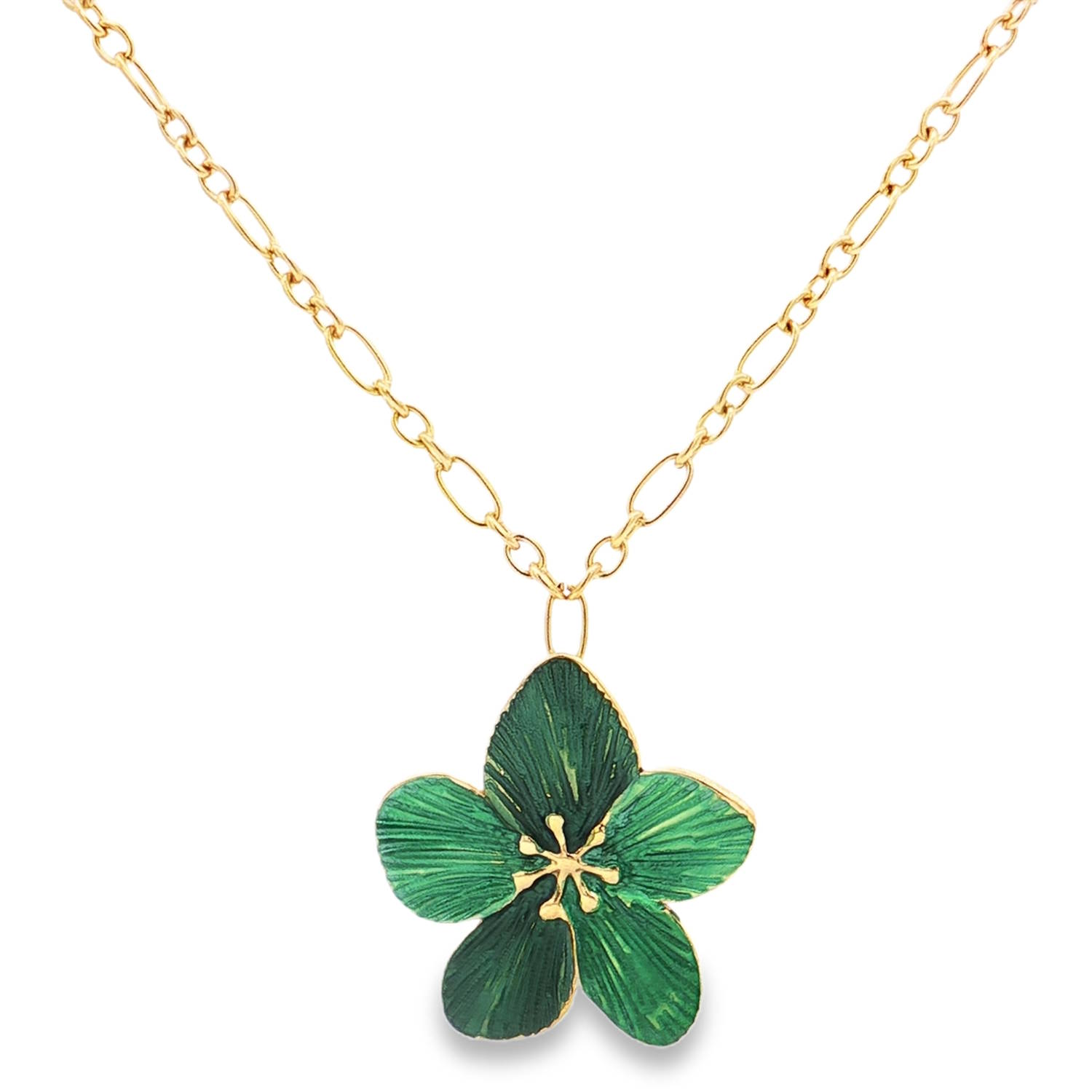 Ce délicat collier, en acier doré étincelant, met en valeur un pendentif floral raffiné.