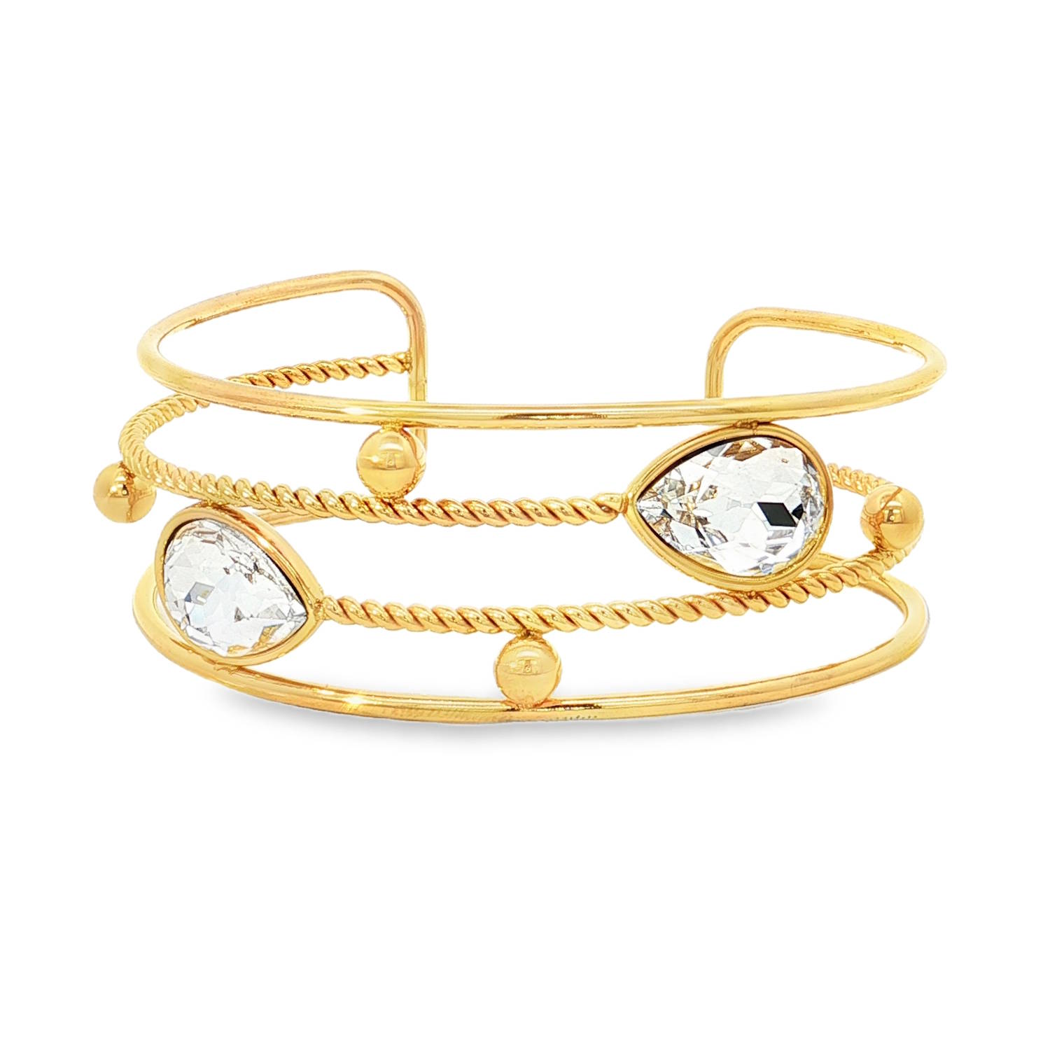 Orné de cristaux taillés en poire avec une coupe brillant, ce bracelet associe luxe et modernité.