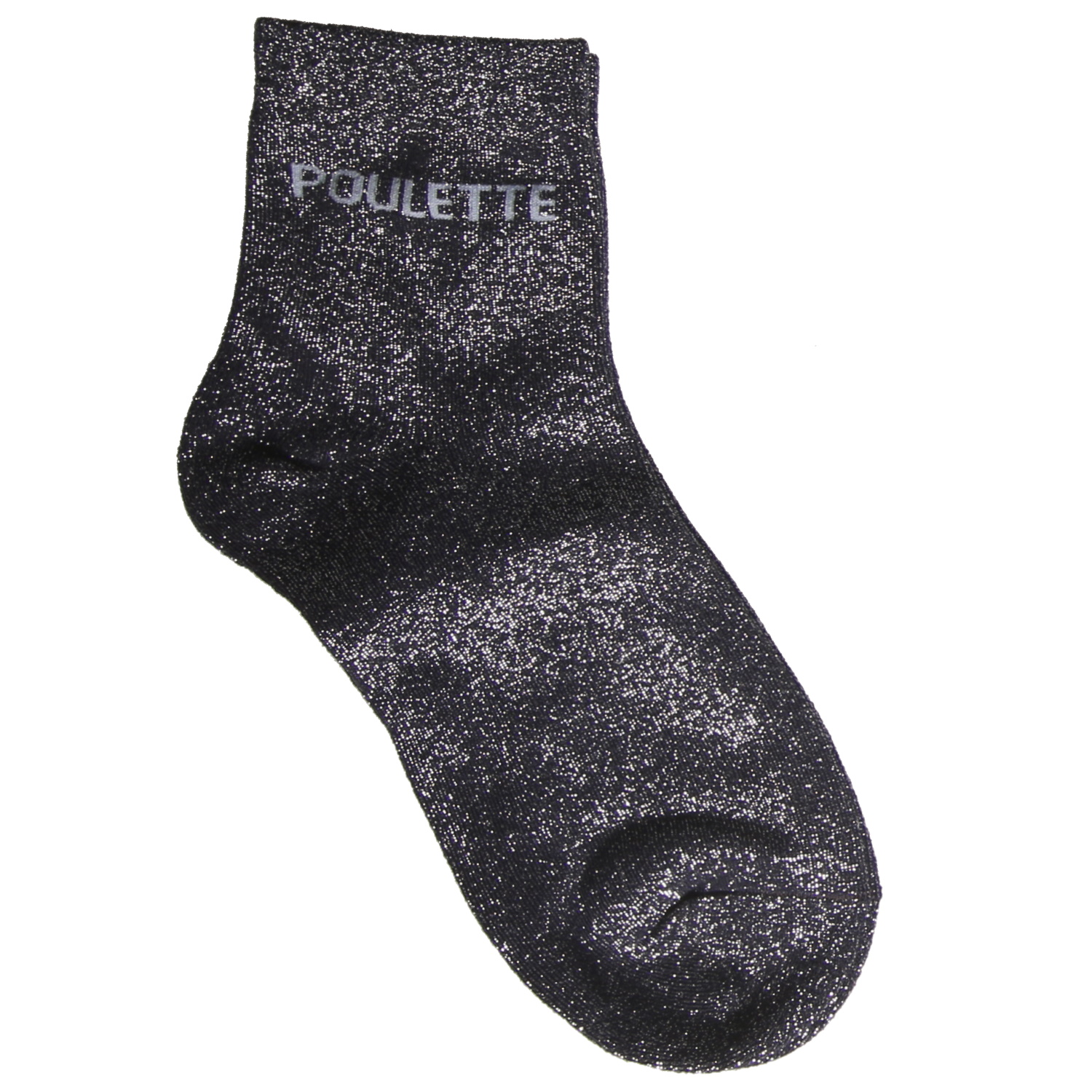 Description Paire de chaussettes scintillantes avec l'inscription Poulette. Cliquez sur une matière, un thème, une couleur ou une collection pour voir tous les articles associés.