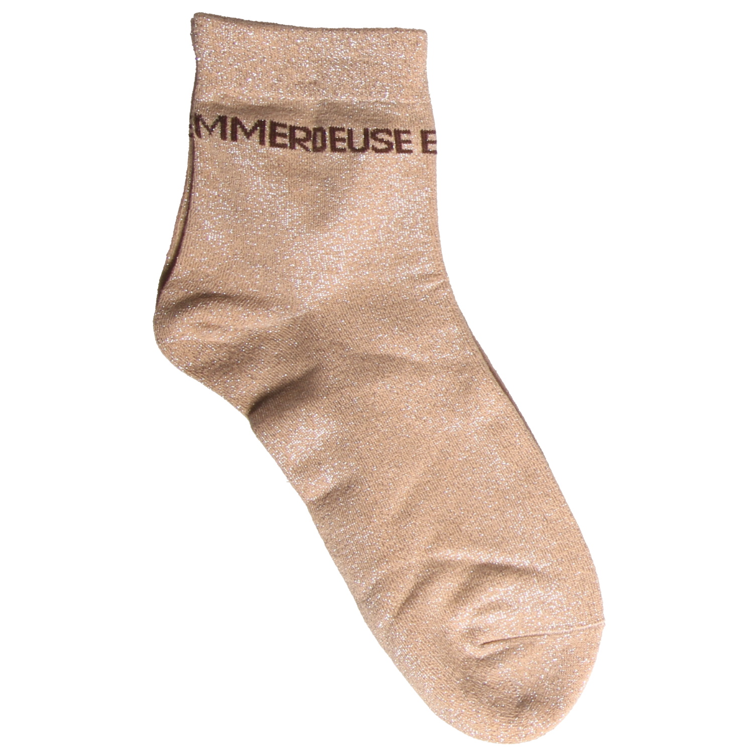 Paire de chaussettes scintillantes avec l'inscription Emmerdeuse.