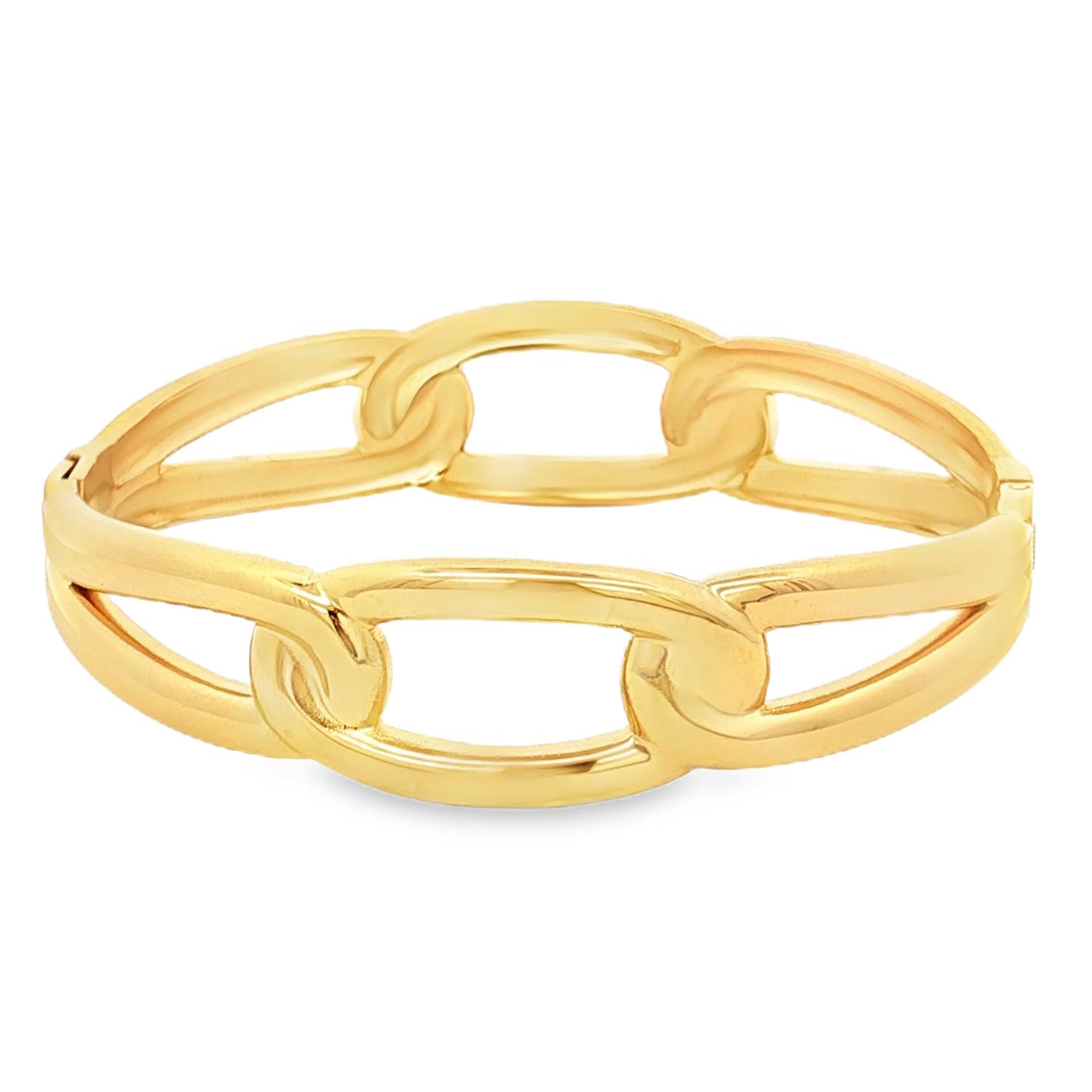 Rehaussez votre style avec ce magnifique bracelet jonc en acier doré.